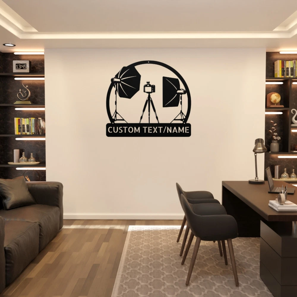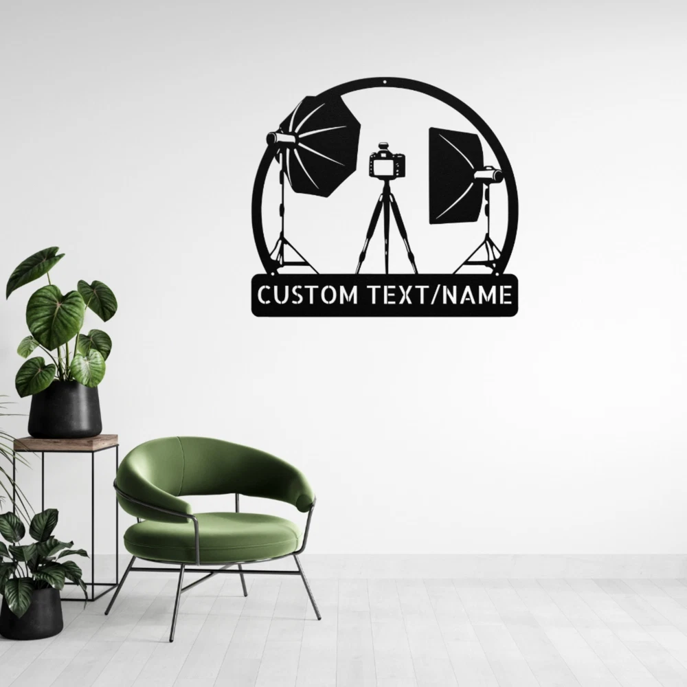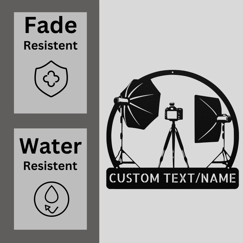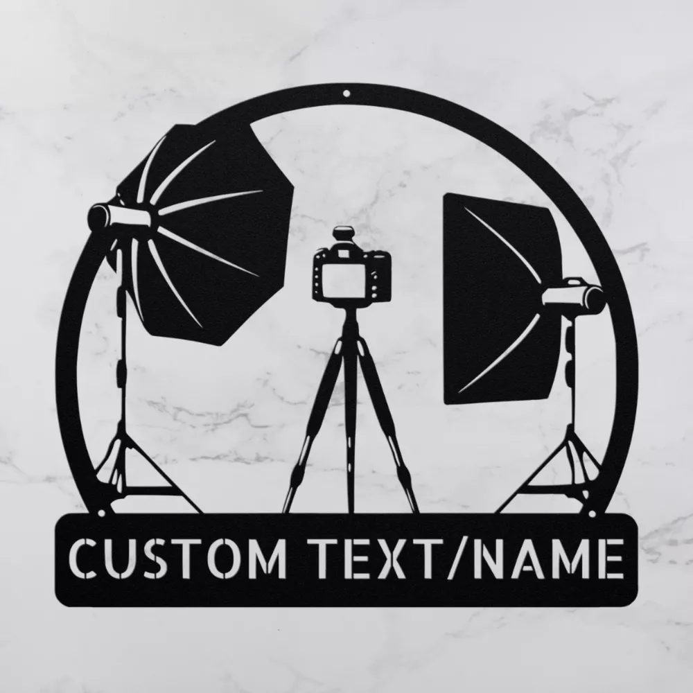 Product Description Custom Photography Studio Metal Sign Personalized Decor for Photographers Enhance your photography studio with this Custom Photography Studio Metal Sign . This personalized sign is perfect for photographers who want to showcase their passion and creativity. Made from 16 gauge high-quality metal, it features a durable powder-coated finish that protects against dust, weather, and water, ensuring it will last for years to come. This sign can be customized with your name, studio name, or any other text you desire, making it a unique addition to your studio decor. Whether you hang it inside or outside, it serves as a stylish way to welcome clients and showcase your brand. The Custom Photography Studio Metal Sign also makes an excellent gift for Christmas, birthdays, or any special occasion for photography enthusiasts or professionals. Key Features: Personalized Design: Customizable with your name or studio name for a unique touch. 16 Gauge High-Quality Metal: Sturdy construction ensures durability and longevity. Powder-Coated Finish: Resistant to dust, weather, and water for indoor and outdoor use. Ideal for Studios: Perfect for photographers looking to add a professional touch to their workspace. Great Gift Option: An ideal gift for Christmas, birthdays, or special occasions for photographers. Make your mark in the photography world with the Custom Photography Studio Metal Sign —a beautiful blend of functionality and style that reflects your passion for photography. Service and Color Choice Our metal signs are designed to be personalized just for you, making them the perfect addition to any space! The default color for our signs is Black , but we also offer a variety of beautiful options including Copper, Gold, White, and Silver . After placing your order, simply contact us with your preferred color choice, and we'll ensure your sign is exactly how you envision it. Let’s create something special together!