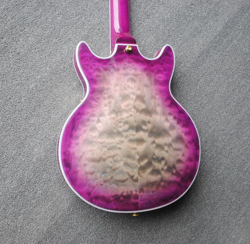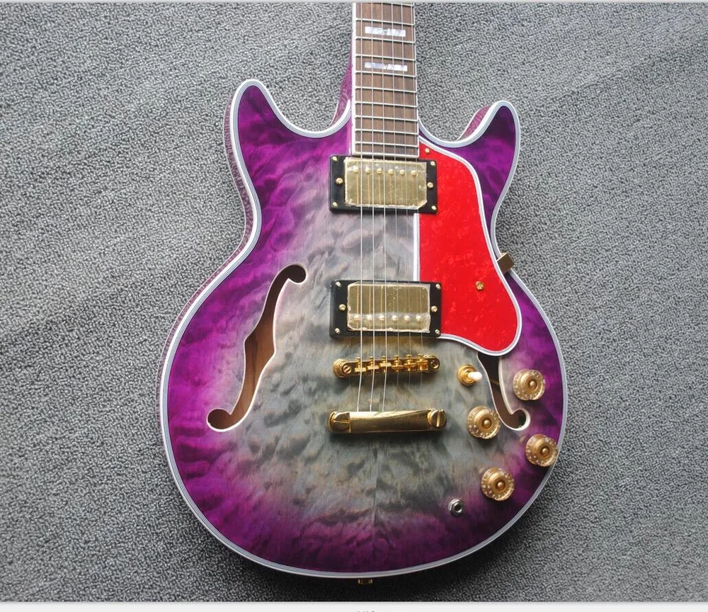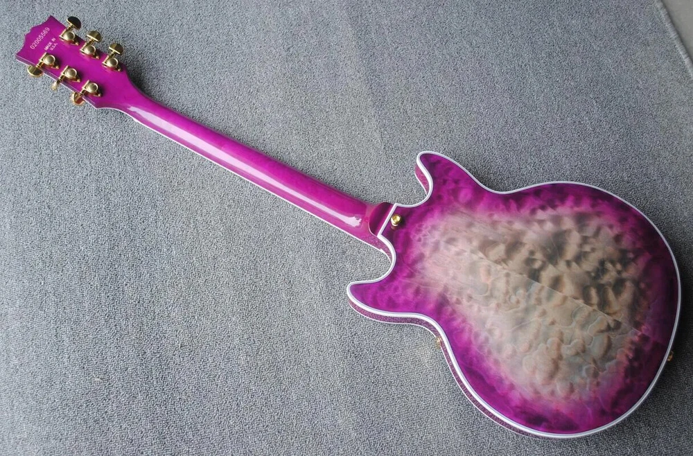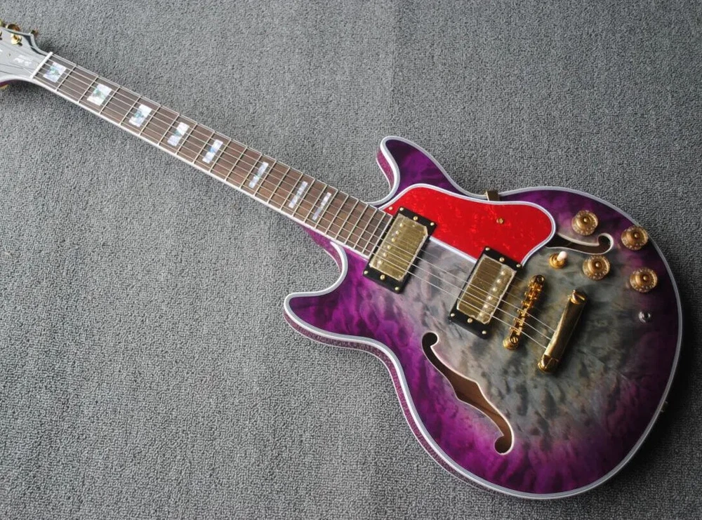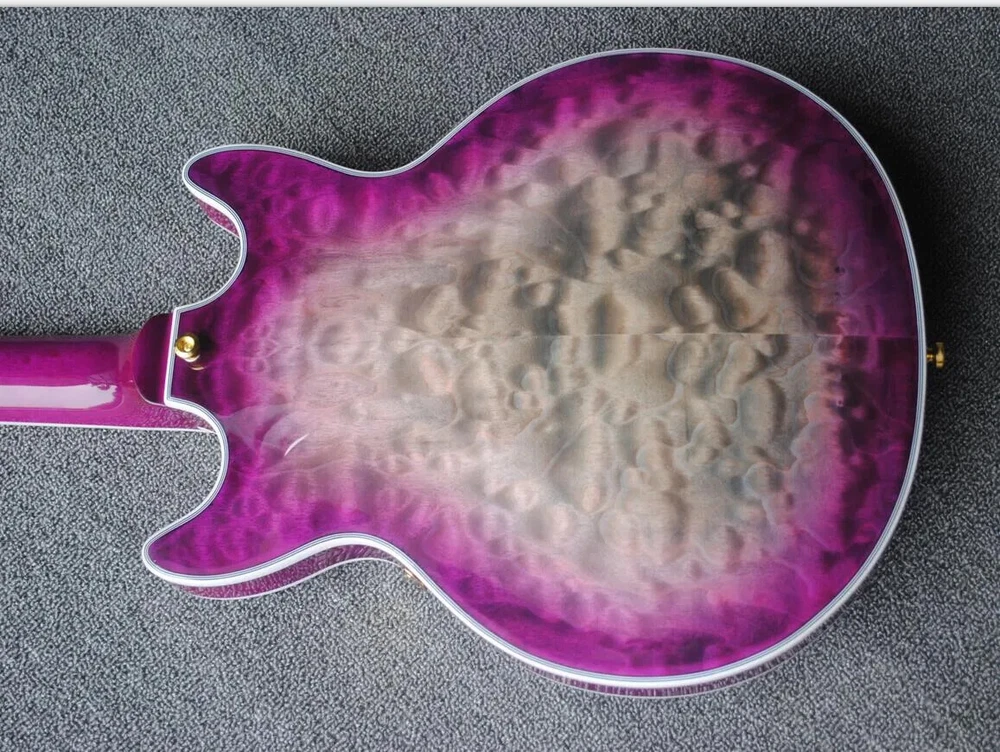 Custom Semi Hollow Body Purple Grey Jazz Electric Guitar Double F Holes, Quilted