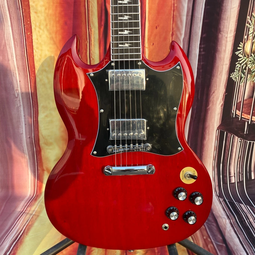 This custom shop Angus Young SG Red Electric Guitar is a dream come true for any guitar enthusiast. With a solid body type and a 4/4 size, this guitar is perfect for professionals who want to take their talent to the next level. The mahogany body material and rosewood fretboard material provide a comfortable feel and excellent sound quality. The guitar comes with a cable and has 22 frets, making it easy to play any song. The red body color adds a touch of style to the guitar, making it perfect for any musician who wants to stand out. This guitar is made in China and is part of the Standard series, making it a must-have for any guitar collector.