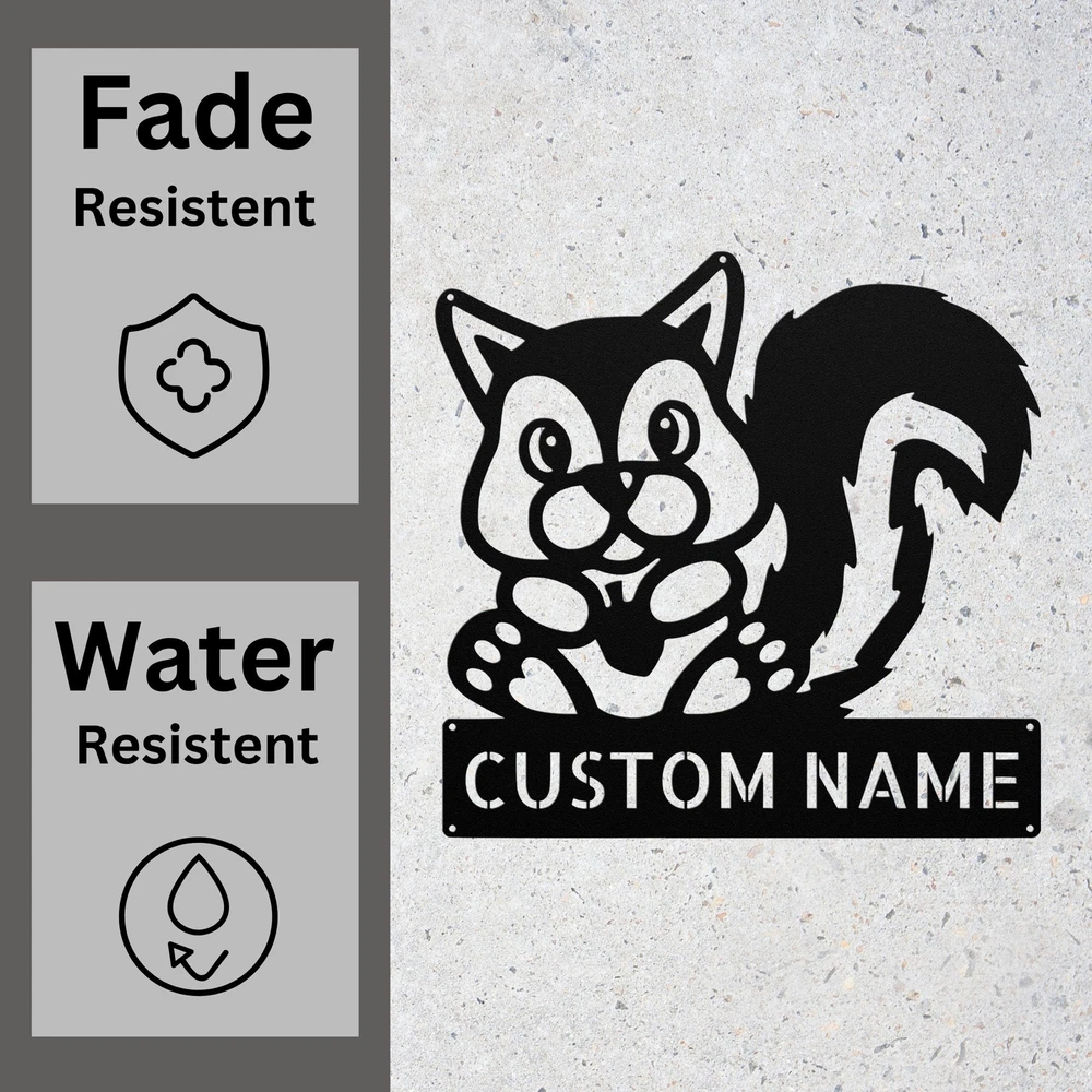 Product Description Custom Squirrel Metal Sign Personalized Woodland Animal Decor Plaque Gift Home Bring a touch of woodland charm to your space with this Custom Squirrel Metal Sign ! Featuring a beautifully detailed squirrel design , this personalized plaque is perfect for nature lovers, rustic home décor, cabins, and outdoor enthusiasts . Whether you’re decorating a forest-themed nursery, cozy lodge, backyard retreat, or front porch , this high-quality metal sign is a delightful addition to any space! 🍁 Key Features: ✔ Customizable with Your Name or Message – Add a unique touch to make it truly yours! ✔ Premium-Quality Metal – Durable, weather-resistant aluminum ensures long-lasting beauty. ✔ Rustic Woodland Animal Design – Features an artistic, lifelike squirrel in a cozy forest setting. ✔ Fade & Weather-Resistant – Perfect for indoor & outdoor use, from homes to cabins and garden areas. ✔ Ideal for Any Space – Adds warmth and personality to living rooms, porches, barns, sheds, and nature-themed nurseries . 🎁 A Unique & Thoughtful Gift! 🎁 Looking for a personalized gift for a squirrel lover, wildlife enthusiast, or cabin owner ? This custom woodland metal sign makes a heartfelt present for birthdays, housewarmings, holidays, and anniversaries . 📏 Available Sizes: Choose from various sizes to fit your space—whether you need a small, cozy plaque or a large statement piece . 🔧 Easy to Hang & Display: Designed with pre-drilled holes for effortless mounting on walls, fences, trees, patios, and more! 🏡 Perfect for: Rustic & Woodland-Themed Home Décor Cabins, Lodges & Forest Retreats Personalized Squirrel Gifts & Nature Lovers Garden & Outdoor Decorations Squirrel & Wildlife Enthusiast Collections Service and Color Choice Our metal signs are designed to be personalized just for you, making them the perfect addition to any space! The default color for our signs is Black , but we also offer a variety of beautiful options including Copper, Gold, White, and Silver . After placing your order, simply contact us with your preferred color choice, and we'll ensure your sign is exactly how you envision it. Let’s create something special together!