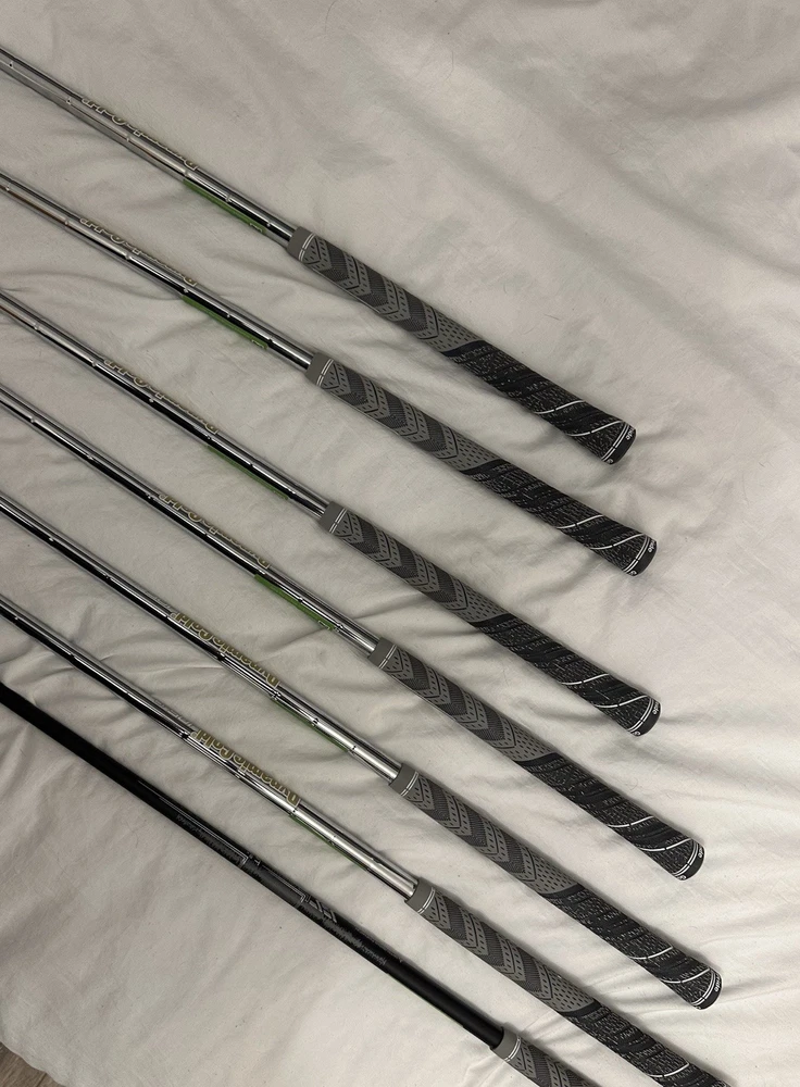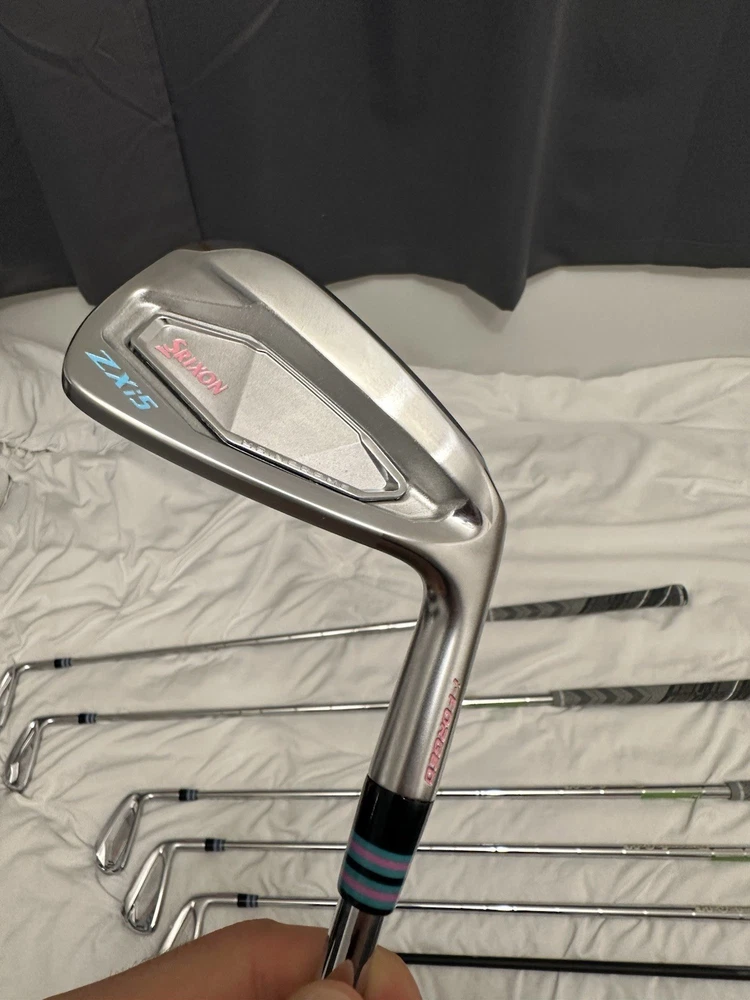 The 3,9, and PW are -2 strong because the zxi7 are thin and loft are too similar to the zxi5 so I lowered the lofts on the to be more like zxi5 lofts at the club but be more controllable and the 3 iron I wanted to go as far as a 2 iron. Besides that all standard length, 105 stiff gold shafts. Standard size grips. Standard lofts customized on srixon website. Because if you look up the lofts for the ZXi5 and the ZXI7, the nine iron ZXi7 and the eight iron ZXi5 are almost the same lofts. They are really new and only used at a golf dome slightly with friends.