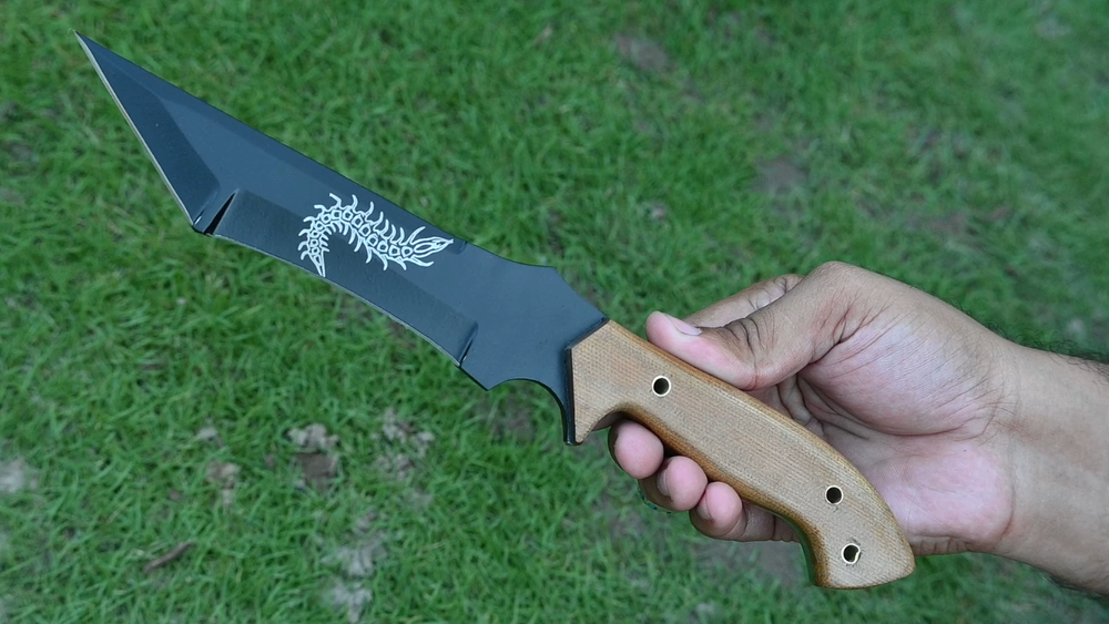 Custom Tactical Tanto Hunting Knife with Black Coated Carbon Steel Blade 2877