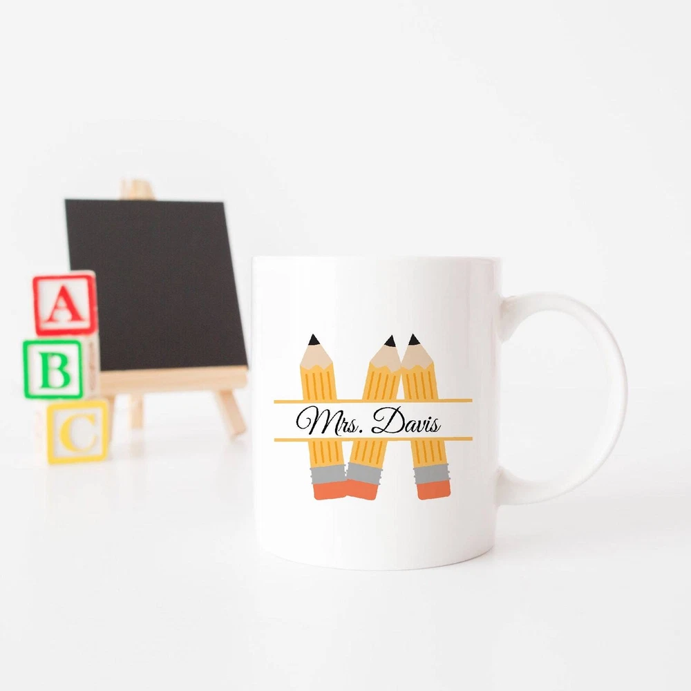 Custom Teacher Name Pencil Mug End Of The Year Gift Thank You Gift Mentor Product Details.. This high quality 11oz. ceramic white mug has a premium hard coat that provides crisp and vibrant color reproduction sure to last for years. Perfect for all hot & cold beverages. The highest quality printing possible is used. It will never fade no matter how many times you wash it. Material: 100% Ceramic. Print both sides. Dishwasher and Microwave Safe. High Gloss + Premium White Finish. Printed in the U.S.A. Personalized & Custom. We support personalized and custom mug to add custom, when placing an order, you can add notes to the "order note" in shipping address section. Also you can contact us directly via message. Shipping Info. Ready to ship in 1 to 2 business days, All products are made-to-order and proudly printed in the United States. Shipped by USPS and DHL, You will receive your order in 5-7 days. Replace & Refund. All products are defective during shipping broken, chipped will be replaced free of charge. You are not satisfied with the product, we will refund 100% money to you. If any other issues arise, please do not hesitate to message, we would be more than happy to assist you.