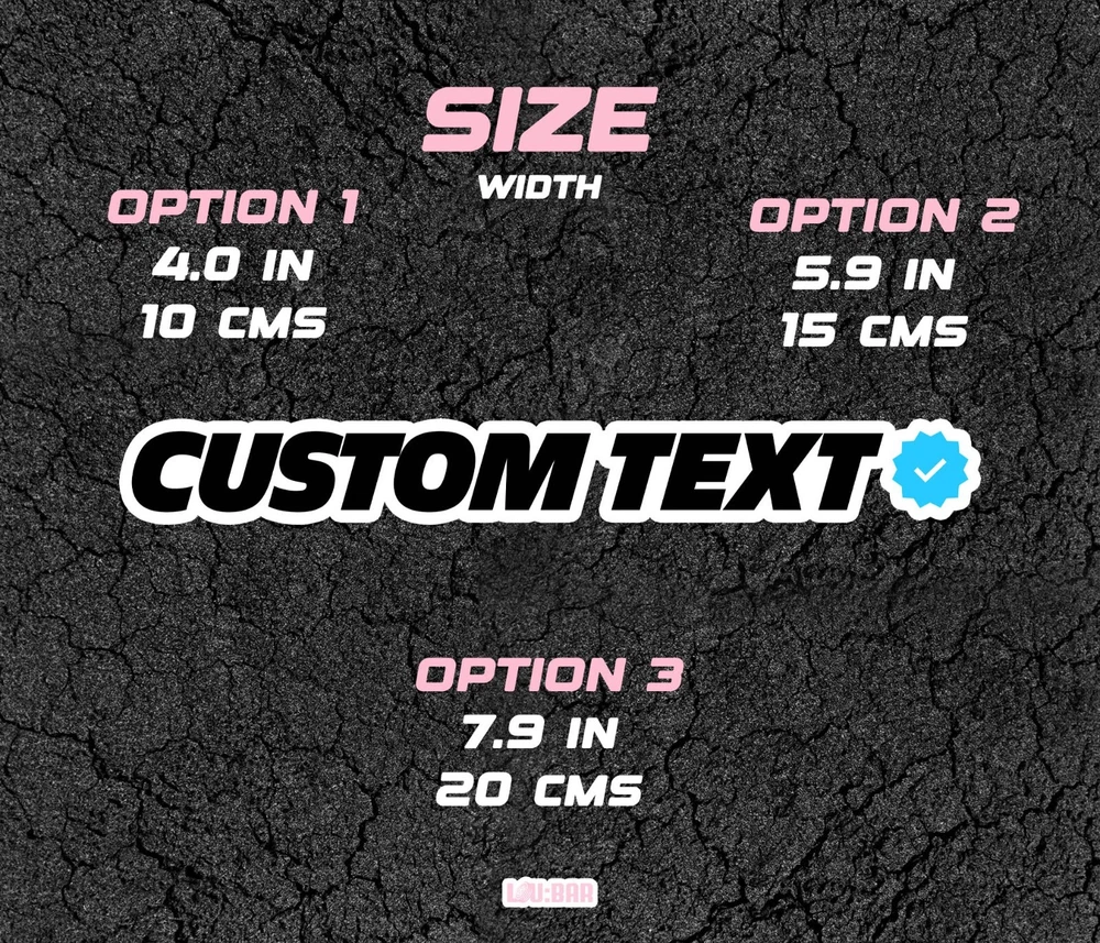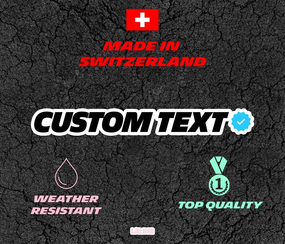 "Custom Text" Certified Blue Check/Tick Sticker Get your custom text certified blue check/tick sticker ! Available in various sizes. Enquire quote for custom sizes. IMPORTANT - Provide your custom text after ordering by message - ATTENTION: Only 12 characters allowed, including whitespace(s). - Bigger text? Enquire quote first. All our stickers are high quality and will last long in time as they are weather resistant. They can be used as decals without any issue. 100% handmade in Switzerland: from the design, the printing, the cutting to the shipping. ----------------------------------------------------- SIZE ----------------------------------------------------- Option 1 3.0 inches or 7.5 cms or 750 mms Option 2 3.92 inches or 10.0 cms or 100 mms Option 3 5.9 inches 15 cms 150 mms Option 4 7.9 inches 20 cms 200 mms ----------------------------------------------------- M A T E R I A L S ----------------------------------------------------- Vinyle. Application: Outside. Weather Resistant: Yes. ----------------------------------------------------- SHIPPING INFORMATION ----------------------------------------------------- Shipping within 48-72 hours. To maintain low shipping costs, there are no tracking options available and the stickers are sent using a normal envelope. ----------------------------------------------------- N O T E S ----------------------------------------------------- The colors may vary depending on your screen settings. If you have any hesitations or questions, don’t hesitate to message us.
