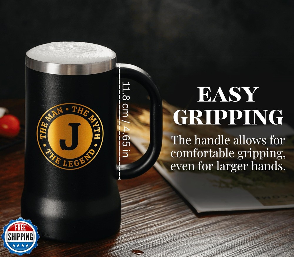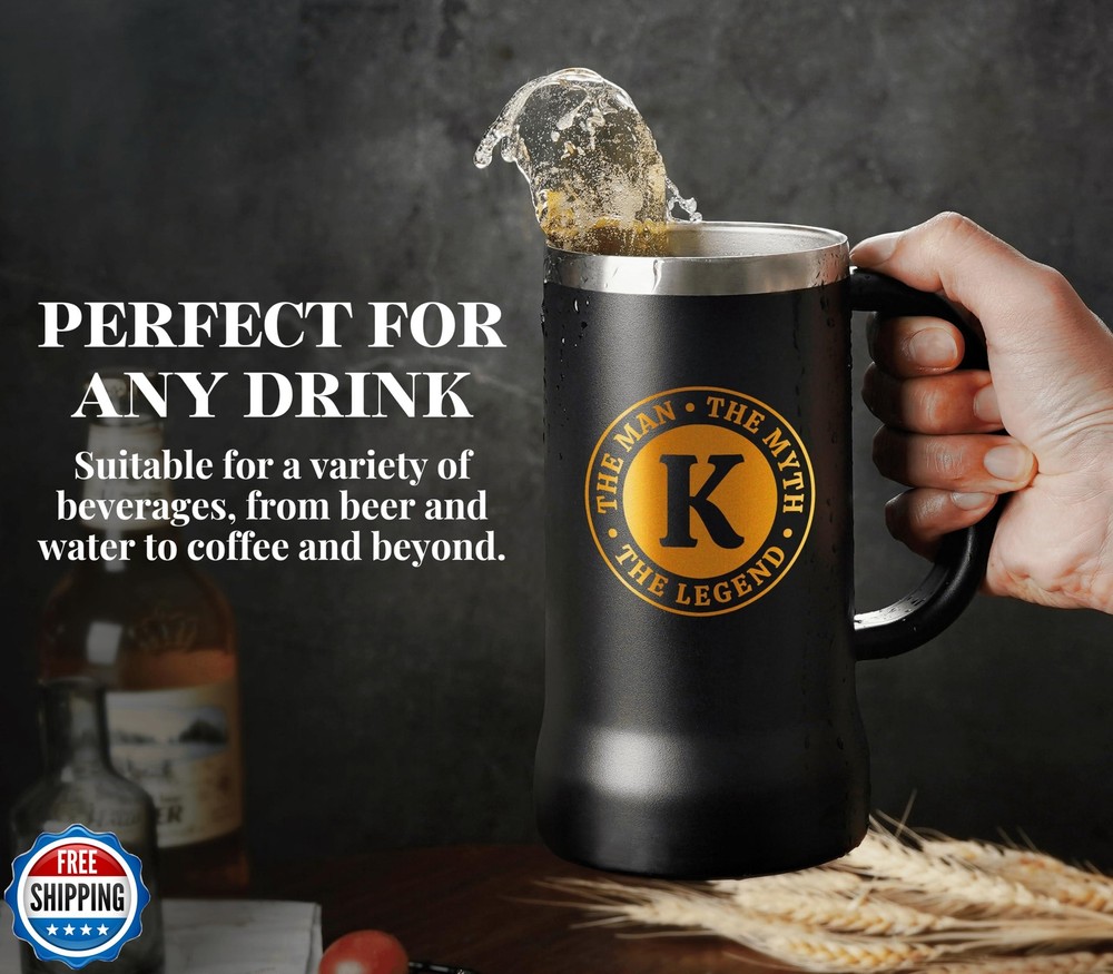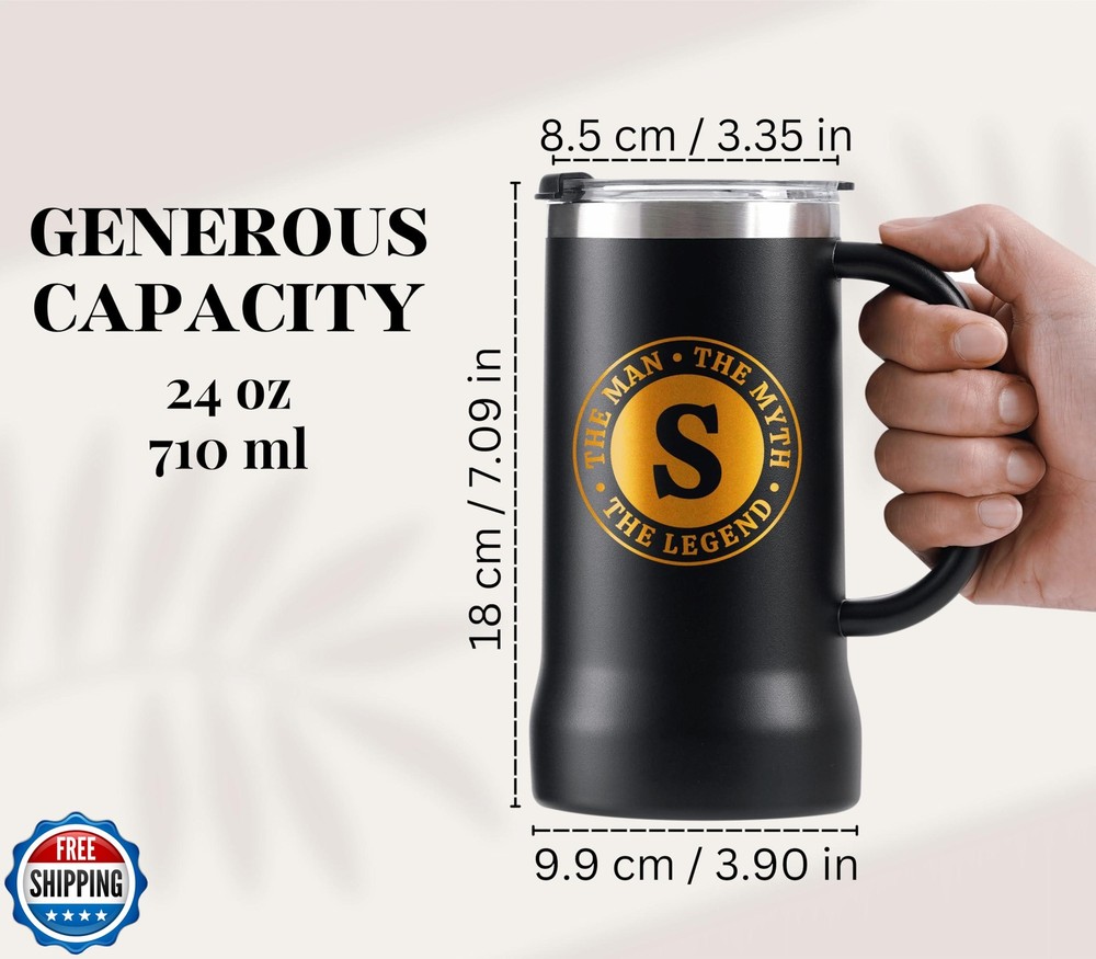 Onebttl Personalized Travel Mug with Handle, Beer Stein for Men, Funny Custom Alcohol Gifts for Beer Lovers, Unique Birthday Christmas Gifts for Him, the Man the Myth the Legend, L Features Ideal Gift Choice: Looking for the perfect gift for him? This personalized beer mug is a heartfelt gesture for any occasion—birthdays, anniversaries, or just because—adding a personal touch that makes moments memorable. Unique Design: Our mugs feature the bold phrase "The Man, The Myth, The Legend," along with a personalized initial. This one-of-a-kind design makes each mug a truly special keepsake. Superior Insulation: Crafted from premium 304 stainless steel, this mug keeps your drinks steaming hot for up to 3 hours and refreshingly cold for 9, ensuring every sip is just right. Ergonomic Handle: Enjoy every moment with a thoughtfully designed handle that offers a comfortable grip, perfect for savoring your favorite beverages at home or on the move. Spacious 24oz Capacity: With a generous 24-ounce size, this mug is ideal for everything from frosty beers to piping hot brews, making it an essential addition to your drinkware collection. Shipping Free & Fast Shipping: We offer free shipping to most of the USA with a normal delivery time of 3-7 days. However, due to the current situation, additional delivery time (up to 3 weeks) may be required for some items. Alternative Carriers: We may use alternative carriers (e.g., USPS, FedEx, UPS) to ensure your package arrives safely and on time. Due to the use of multiple carriers, we are unable to provide a tracking number automatically. Handling Time: Orders are processed and shipped within 1-2 business days of receiving cleared payment. Shipping Restrictions: Shipping to Alaska, Hawaii, Puerto Rico, Guam, and other US territories may incur shipping charges or delivery restrictions. Please contact us before ordering, or your order can be refunded/cancelled. State Restrictions: Certain items may not be shipped to California due to state regulations. Contact for Tracking Updates: If you require tracking updates or have any concerns about the delivery of your order, please feel free to contact us, and we will be happy to assist you. Return Policy 30-Day Hassle-Free Returns: If you are not completely satisfied with your purchase, you can return the item for free within 30 days of receiving it for a full refund or exchange. Easy Return Process: Contact us, and we will provide you with a prepaid return shipping label and detailed instructions. No Restocking Fee: There are no restocking fees for returns. However, the buyer is responsible for return shipping costs if the return is not due to a seller"s error. Refund Processing: Refunds will be processed within 1 business day of receiving the returned item in its original condition. Feedback Your feedback is extremely important to us. We strive to provide the best products and customer service possible. If you are satisfied with your purchase, please take a moment to leave us a positive review. If you have any concerns or issues with your order, please contact us before leaving negative feedback. We are committed to resolving any problems and ensuring your satisfaction. Contact Us If you have any questions or concerns, please feel free to reach out to our customer support team. You can contact us through the eBay messaging system. We are available Monday to Friday, 9:00 am to 5:00 pm EST, and we will do our best to respond to your inquiry within 24 hours. Thank you for supporting our small family business!