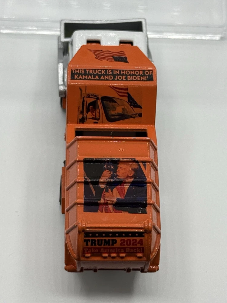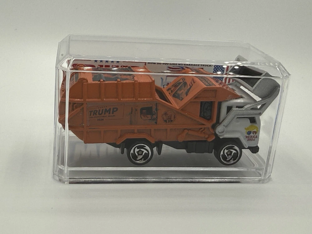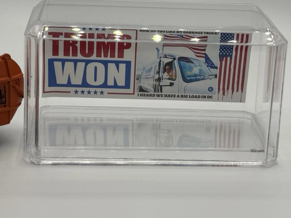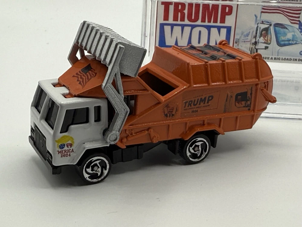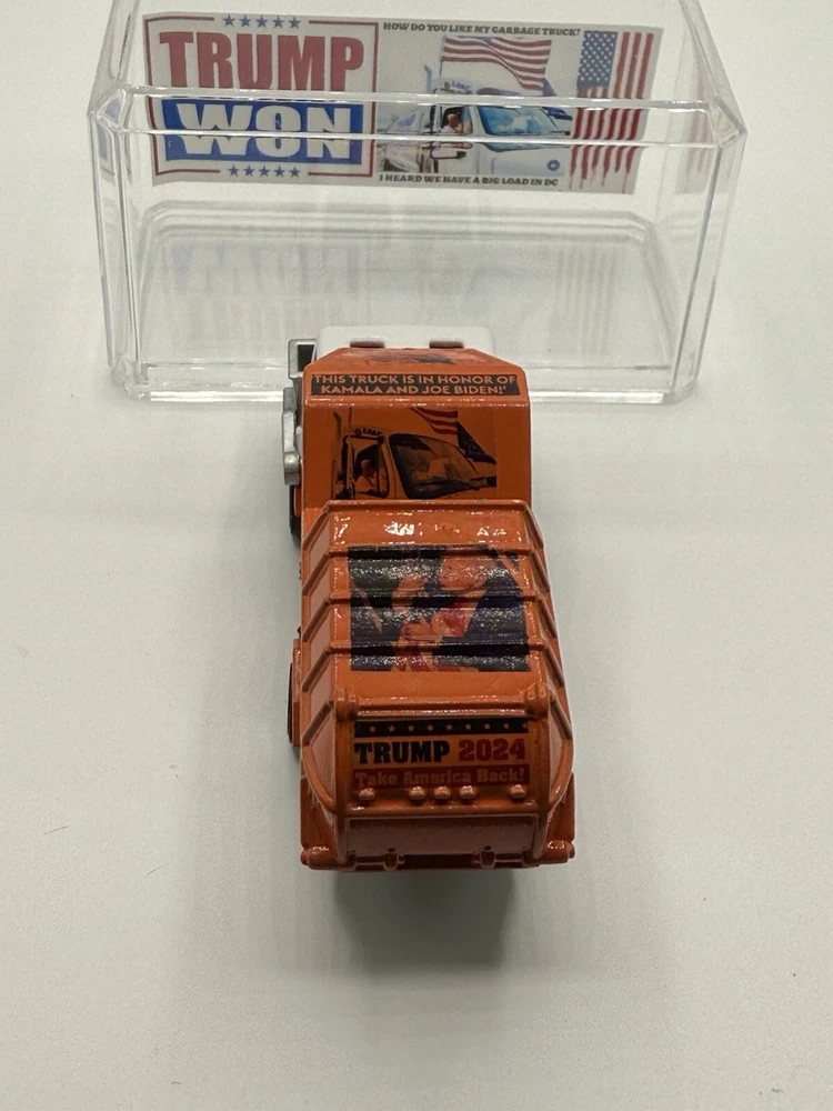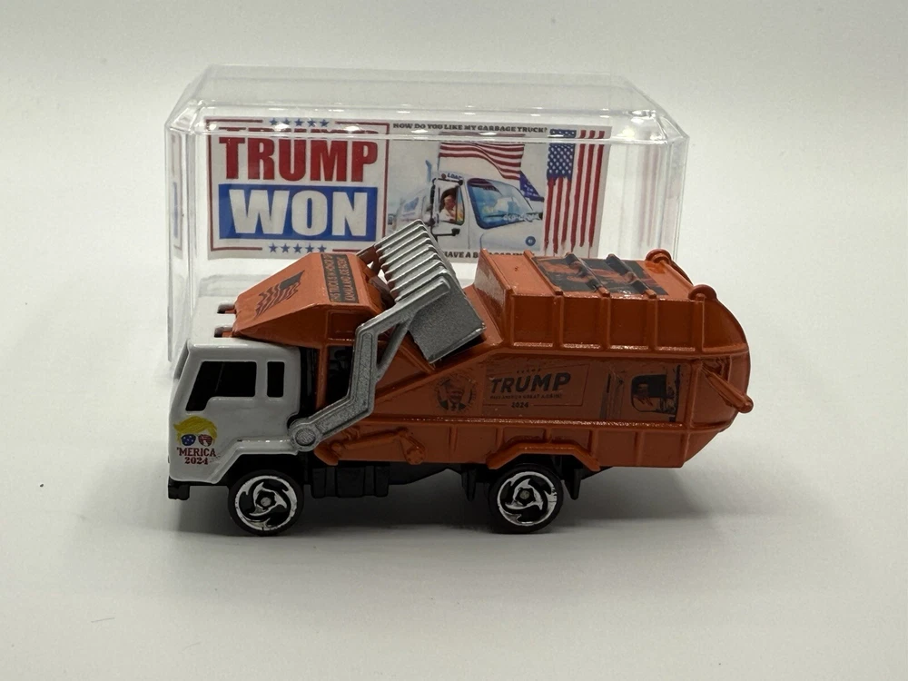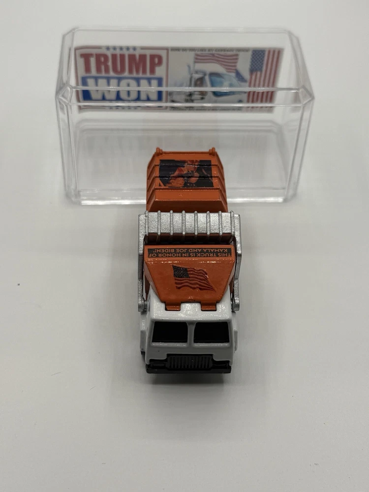 This custom Hot Wheels garbage truck is a must-have for any collector or fan of President Trump. The vibrant orange color and "Trump Won" slogan make it a unique addition to your collection. The 1991 release is part of the Hot Wheels Hot Trucks series and is made of high-quality diecast material. The truck is in a 1:64 scale and comes in an acrylic case. Perfect for display or play, this Hot Wheels truck is a great way to show your support for President Trump.
