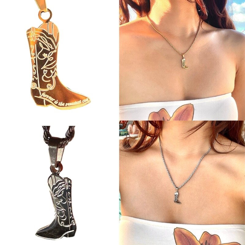 Love this charming boot necklace! The customizable engraving adds a personal flair, and the stainless steel keeps it shiny and durable. The adjustable chain makes it versatile for any outfit—perfect for adding a stylish, unique touch to both casual and dressy looks. A must-have for accessory lovers!
