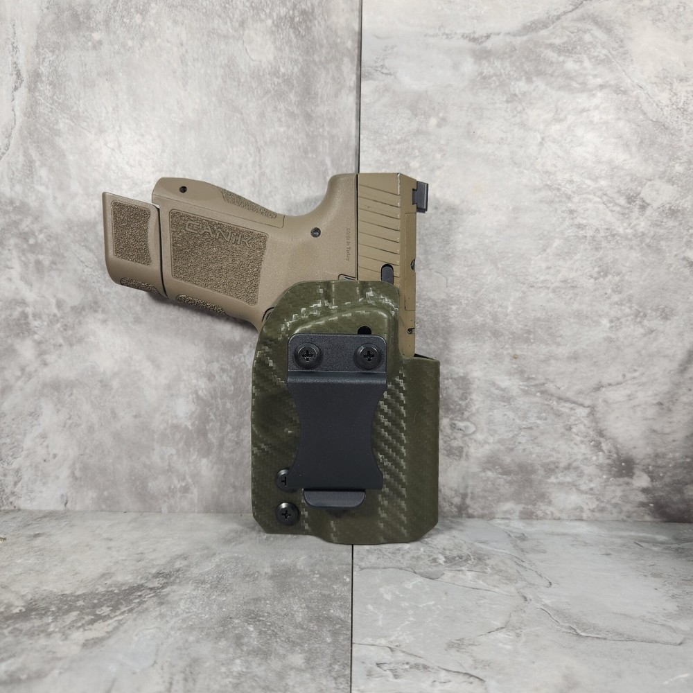 Brand: Tomlin Holsters Material: Carbon Fiber, Kydex For Gun Type: Pistol Type: Concealment Holster For Gun Make: CZ-USA, GLOCK, Heckler & Koch, Ruger, SIG SAUER, Smith & Wesson, Springfield Armory, Taurus, Canik, Shadow Systems Attachment Type: Clip Country/Region of Manufacture: United States Level: Level 1 Carry Location: Appendix, Inside Waistband (IWB)