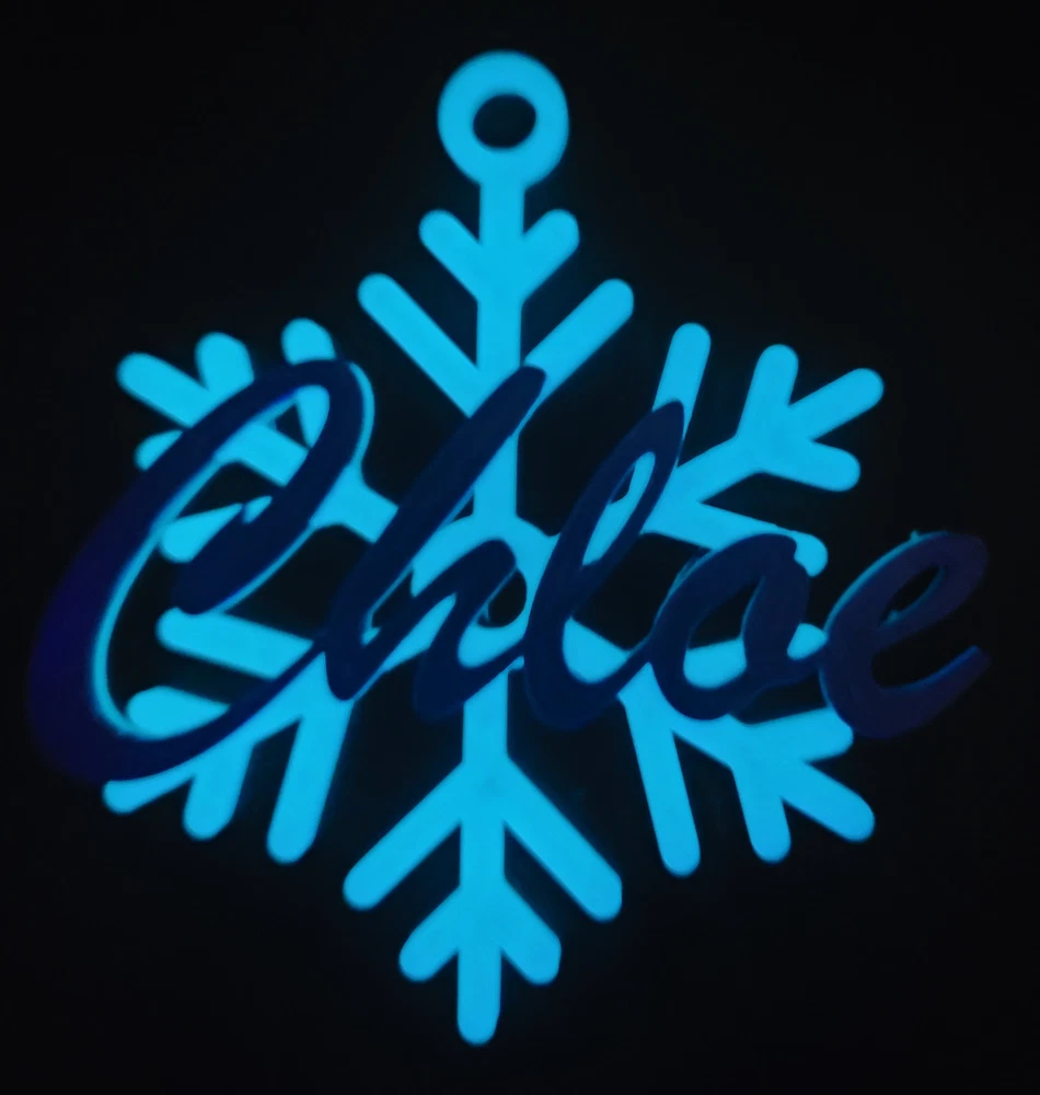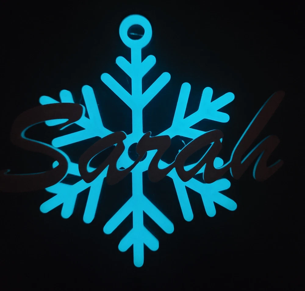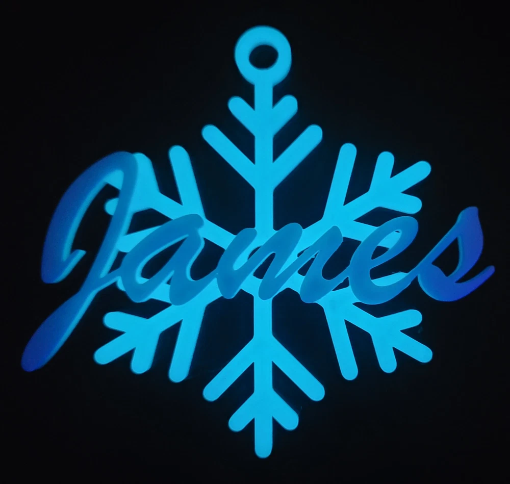 Customizable Name "Glow in the Dark" Christmas Snowflake Ornament 3D Print