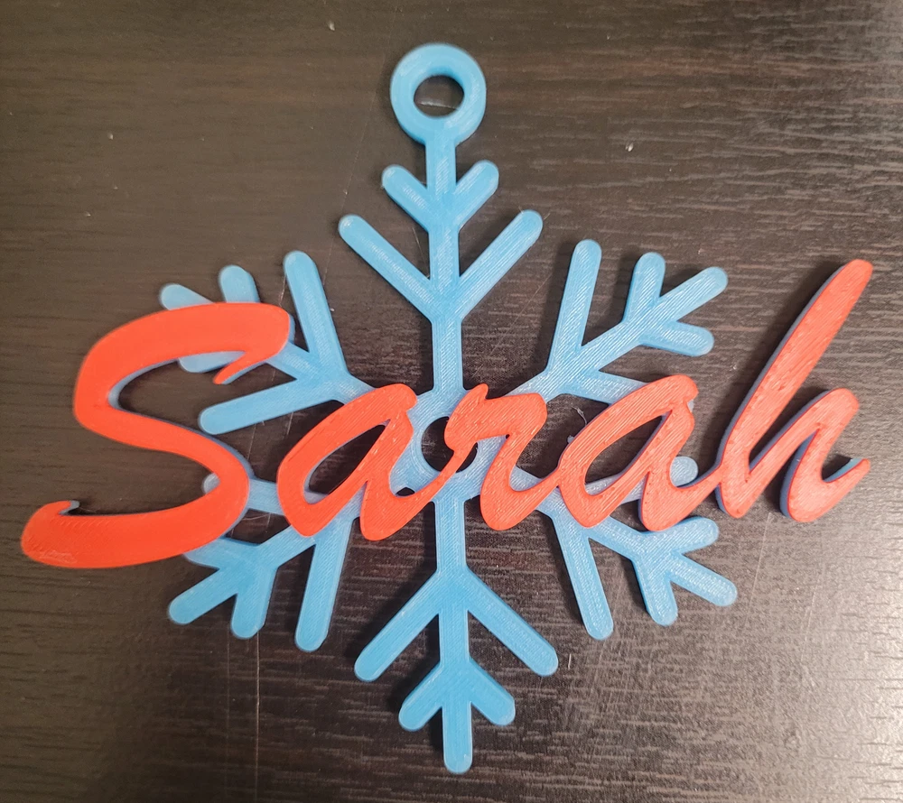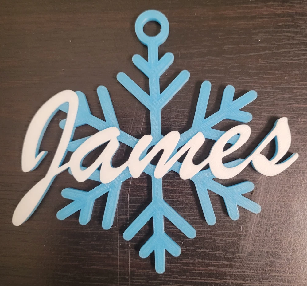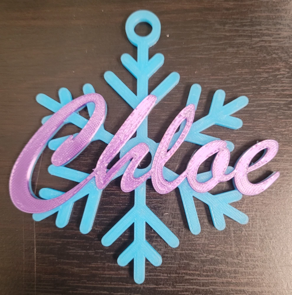 !!!!!!!!!!!!!!!!!!!!!!PLEASE READ CAREFULLY BEFORE ORDERING!!!!!!!!!!!!!!!!!!!!!!!!!!! **********CUSTOM NAME COLORS AVAILABLE. SEND US A MESSAGE TO DISCUSS DETAILS/PRICING********* **********THESE ARE NOT MADE OF HEAT RESISTANT MATERIAL. DO NOT LEAVE IN DIRECT SUN********* **********PLEASE MESSAGE US WITH THE NAME YOU WANT AS SOON AS YOU ORDER********* Model is printed on a Bambu X1 Carbon color 3D printer. This item is 3D printed to order on a high resolution. Snowflake is approx. 3.5" Wide X 4.5" Tall. Name size varies depending on name character count. Looks best with max of 6 letters. ***These are MADE TO ORDER! This does take time to do so. ***Orders can take 5-7 days before they ship!