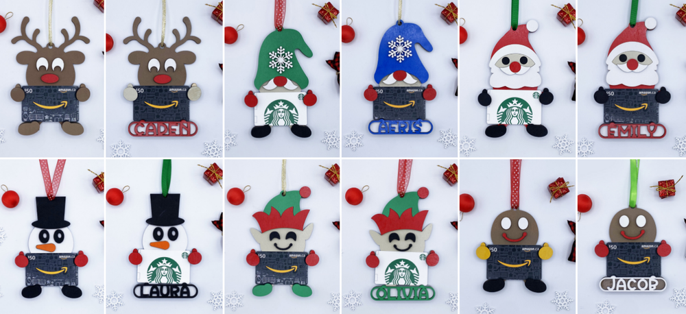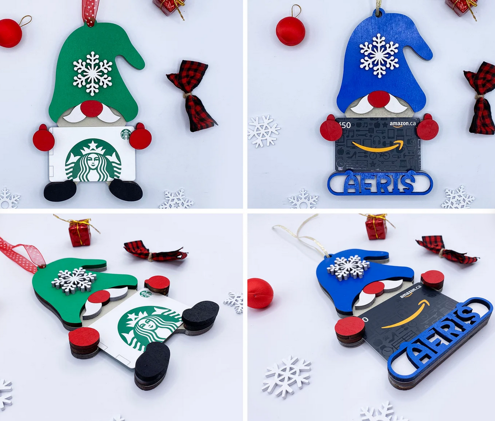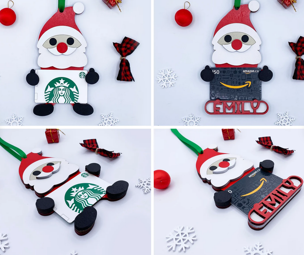- Customized Gift Holder Ornament - Made of Maple Wood and Hand Painted - Personalized with Person's/Child's name - Comes with red ribbon for hanging ****DOES NOT INCLUDE GIFT CARD.**** - PLEASE DOUBLE CHECK your ship to address & customization! We try to ship out as quickly as possible and once it's created, it can't be changed. If you don't want a name to be included, simply write in 'Plain' or 'Generic' and you will receive a basic gift holder ornament Please Double check the spelling!