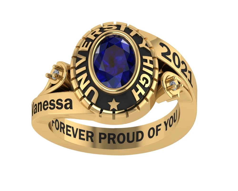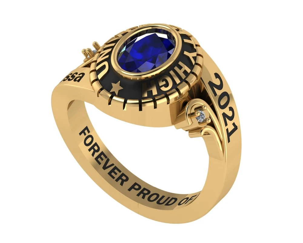 RizaJewelry Designed by RizaJewelry , this ring is made with sterling silver with your choice of platinum, gold, rose gold or gun metal plating finish , or solid 10k white gold , yellow gold or rose gold at your choice . It makes a unique graduation gift. It features multiple customized fields from your birthstone, name, year, and an engraved personal message on the inside. We have hundreds of vectors/symbols for you to choose from. You can also send us your own logo to add to the ring. From raw metals, stones, plating, we use only the best materials to make your ring, you will feel the solidness of the metal and luminous stones and attention to details when you have it in your hand. RizaJewelry, brings bold, authentic designs to your traditional high school and college class jewelry. Our team of professional jewelry designers work with technology experts to bring your dream jewelry designs to life! Commemorate and celebrate your graduation with this exclusively designed class ring! It is 100% custom-made for you to carry on your memories of high school and college through the rest of your life! ๐Ÿ ๐จ๐ง ๐Ÿ ๐ƒ๐ž๐ฌ๐ข๐ ๐ง ๐‘๐ž๐ฏ๐ข๐ž๐ฐ/ ๐Ÿ‘๐ƒ ๐Œ๐จ๐๐ž๐ฅ ๐๐ซ๐ž๐ฏ๐ข๐ž๐ฐ We will send rendering of the 3D model (finished look of the ring) for your approval shortly after the order is placed. A designer will be assigned to you to offer advise on designs & help you make changes. This service is only available from RizaJewelry . ๐“๐ฎ๐ซ๐ž ๐‚๐ฎ๐ฌ๐ญ๐จ๐ฆ๐ข๐ณ๐š๐ญ๐ข๐จ๐ง Other than the hundreds of logos/vectors we offer, you can send us your own logo /clip art to add to the ring. Please message us through Etsy Messages to send a picture of your own logo /clip art. This service is only RizaJewelry . ๐…๐ฎ๐ฅ๐ฅ ๐‚๐ฎ๐ฌ๐ญ๐จ๐ฆ๐ž๐ซ ๐’๐ฎ๐ฉ๐ฉ๐จ๐ซ๐ญ Please contact us through eBay Messages if you find anything wrong with your ring or simple reply to the message where we sent you the 3D. We take full responsibility for any initial defect. ๐’๐จ๐ฅ๐ข๐ ๐๐ฎ๐š๐ฅ๐ข๐ญ๐ฒ Quality is our top priority. The rings have substantial silver / gold weights. You will feel the value of the ring not only from the metal, but also the best quality stones, lustrous plating and precise letters/vectors. A great keepsake for years to come! ๐†๐ข๐Ÿ๐ญ ๐–๐ซ๐š๐ฉ Each ring comes with a nice ring box, a jewelry care kit, a golden ribbon, and a gift bag that fit the graduation theme. ๐…๐š๐ฌ๐ญ ๐ƒ๐ž๐ฅ๐ข๐ฏ๐ž๐ซ๐ฒ We usually ship earlier than the promised date. We suggest you to order earlier than later. ๐…๐ฎ๐ฅ๐ฅ๐ฒ ๐๐ž๐ซ๐ฌ๐จ๐ง๐š๐ฅ๐ข๐ณ๐ž๐ From metal types, birthstone colors, plating finishes, and vectors, free text composing, we offer a wide range of choices for your fully custom made ring. ๐‚๐จ๐ฉ๐ฒ๐ซ๐ข๐ ๐ก๐ญ๐ž๐ ๐ƒ๐ž๐ฌ๐ข๐ ๐ง๐ฌ Each style is created by RizaJewelry and are only available from Jour RizaJewelry stores. We prohibit any counterfeits and intellectual property infringement with legal measures.