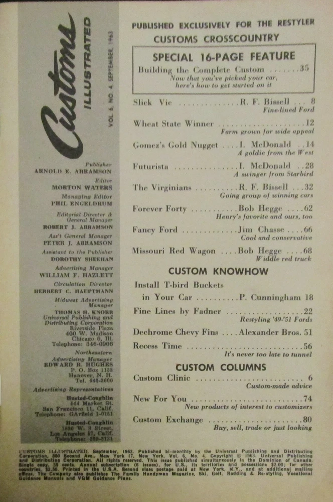 Customs Illustrated Magazine from September of 1963. Magazine is in good condition for it's age, does have some creases on front cover. Feel free to message with any questions and please see our other items.
