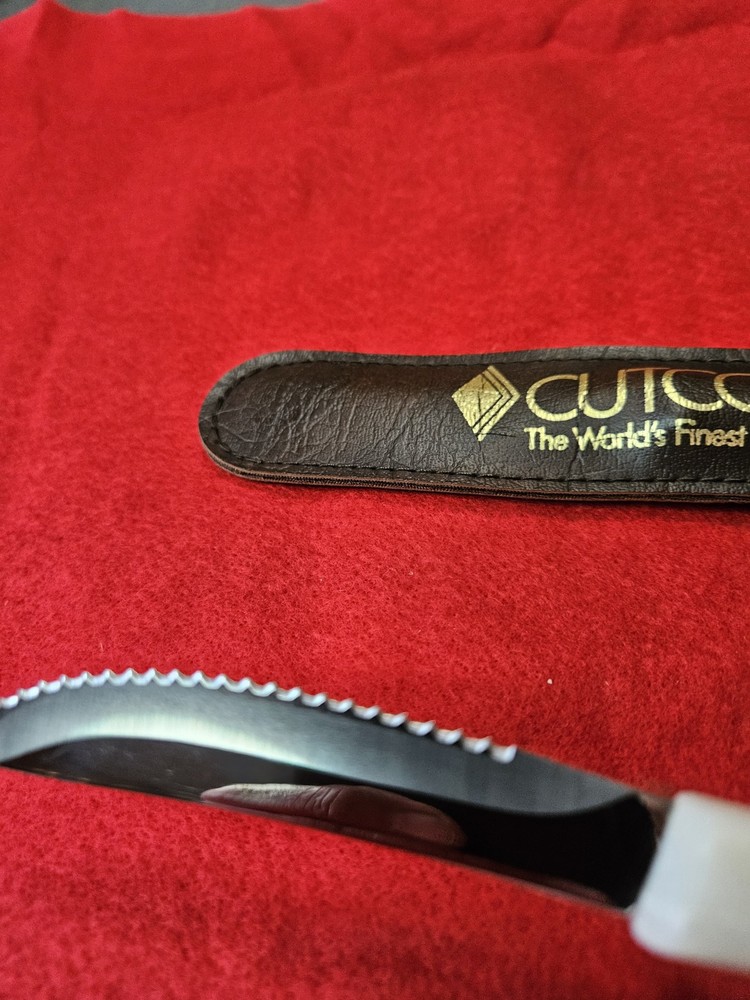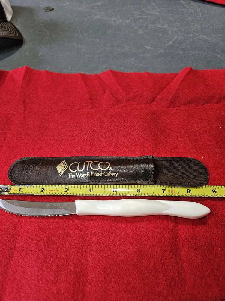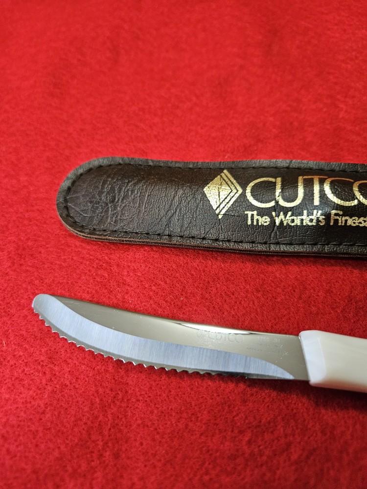 Cutco 1759 JH Serrated Table Knife with White Handle and Storage Sheath Made in USA High Quality