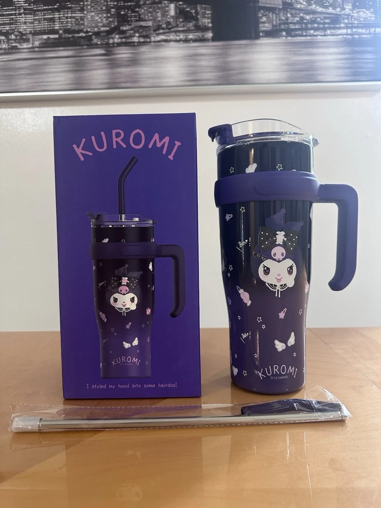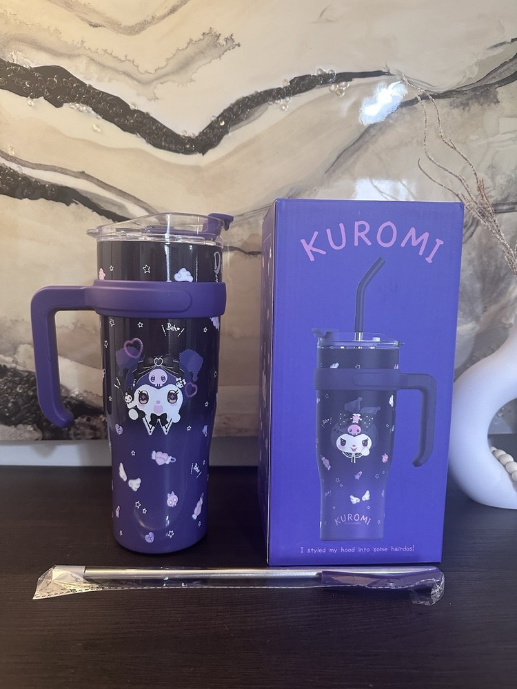 The Kuromi Drinking Big Cup is a personalized jumbo mug with a solid blue color and a cute bottle theme. This 40 oz cup comes with a cup lid and straw, making it a fun and unique gift for any occasion. Personalize it with your name to add a personal touch, and enjoy your favorite beverages in style.