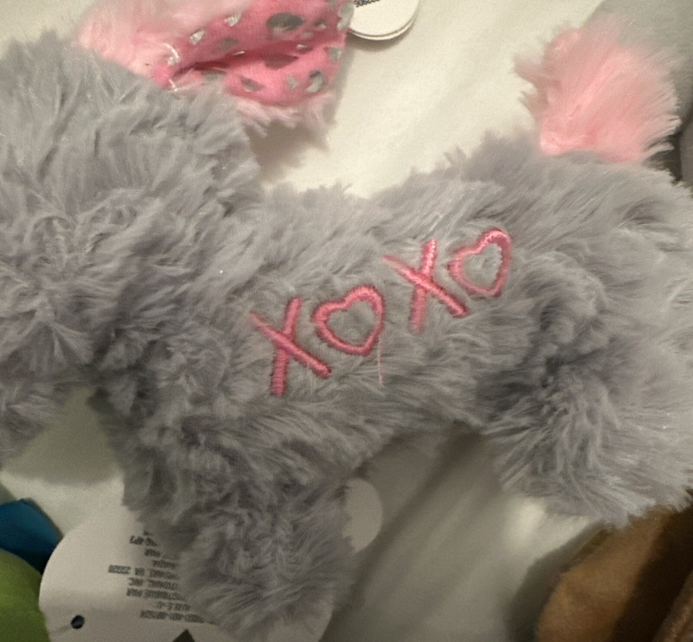 The product is a Fuzzy Friends Valentine's Day Plush Pink Puppy Dog measuring 7 inches. It is a soft plush toy featuring the word "XOXO." This small-sized dog is recommended for ages 3 and up, suitable for children aged 3-16 years. Made in China, this cute plush belongs to the Fuzzy Friends character family and is perfect for Valentine's Day gifting.