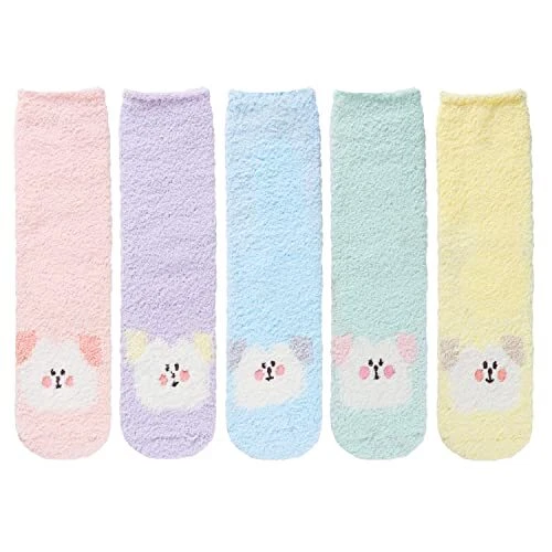 Cute Animal Fuzzy Socks for Women Girls Funny 3D Animal Cozy 5 Pack-puppies