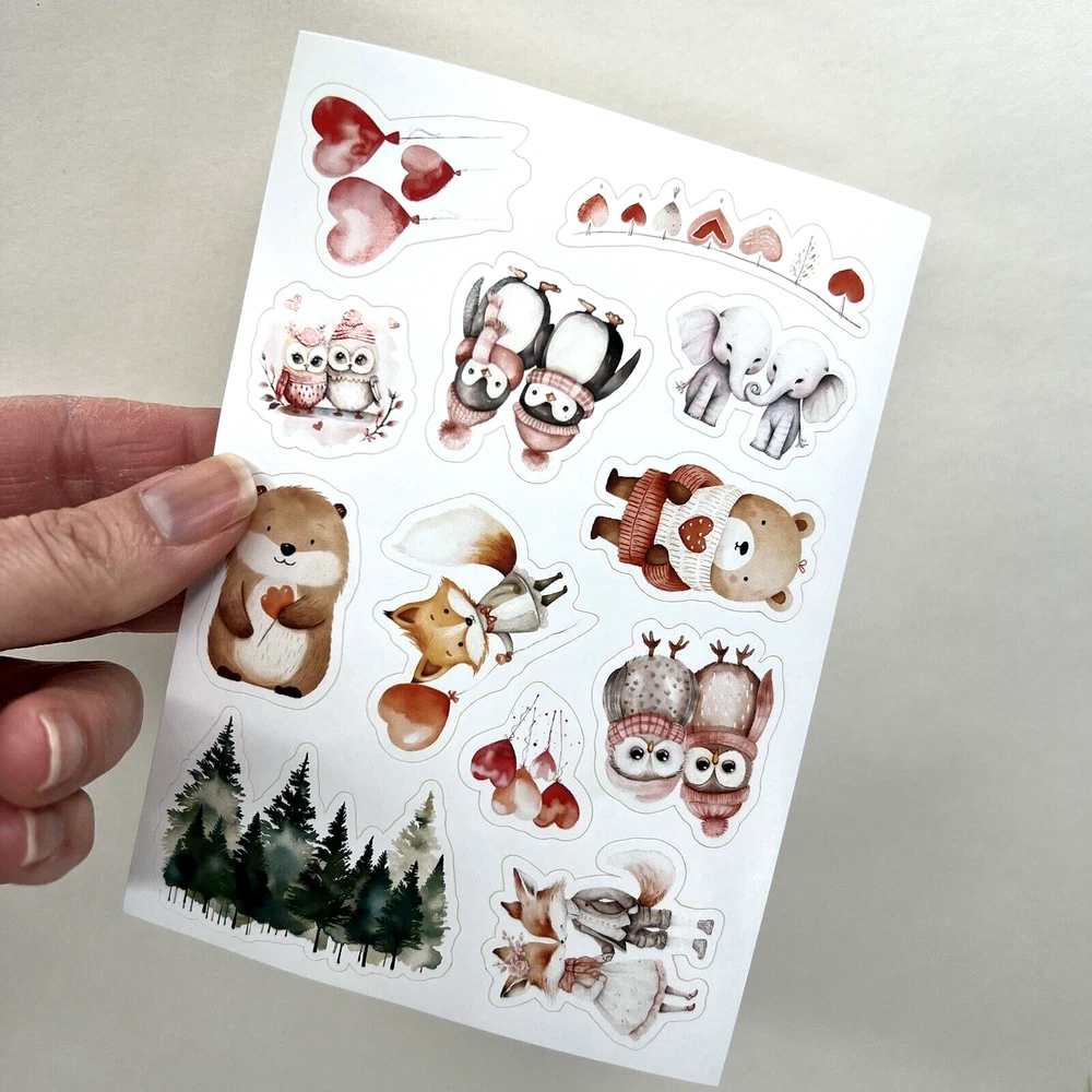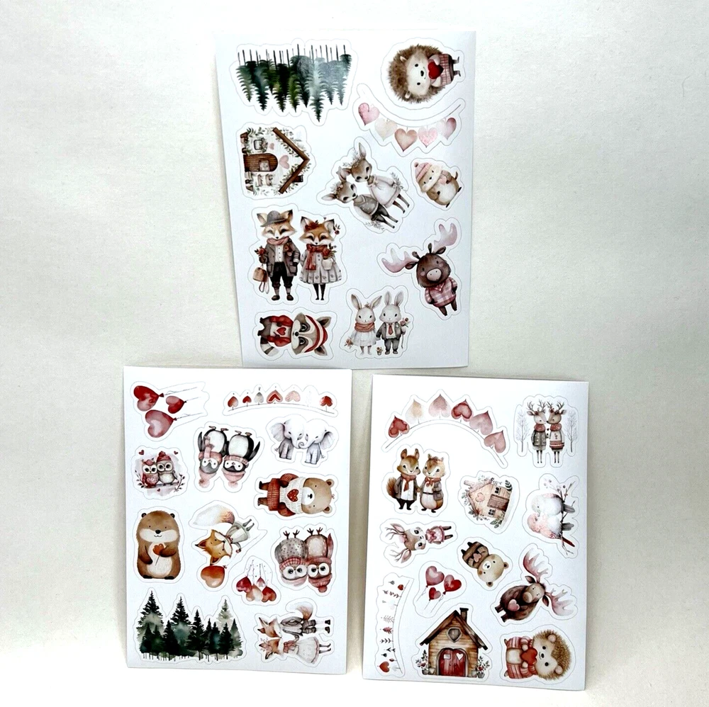 Cute Animal Valentine's Day Stickers 3 Sheets Junk Journal Collage Cards