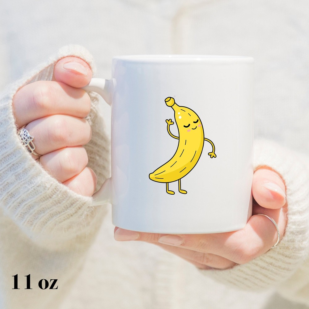 Banana Mug Banana Mug Banana Gift Banana Coffee Mug Banana Lover Gift Cute Product Details.. This high quality 11oz. ceramic white mug has a premium hard coat that provides crisp and vibrant color reproduction sure to last for years. Perfect for all hot & cold beverages. The highest quality printing possible is used. It will never fade no matter how many times you wash it. Material: 100% Ceramic. Print both sides. Dishwasher and Microwave Safe. High Gloss + Premium White Finish. Printed in the U.S.A. Personalized & Custom. We support personalized and custom mug to add custom, when placing an order, you can add notes to the "order note" in shipping address section. Also you can contact us directly via message. Shipping Info. Ready to ship in 1 to 2 business days, All products are made-to-order and proudly printed in the United States. Shipped by USPS and DHL, You will receive your order in 5-7 days. Replace & Refund. All products are defective during shipping broken, chipped will be replaced free of charge. You are not satisfied with the product, we will refund 100% money to you. If any other issues arise, please do not hesitate to message, we would be more than happy to assist you.