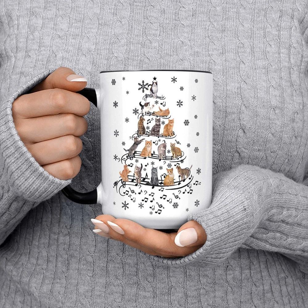 This Cat Mug is the perfect gift for cat lovers and anyone who appreciates a touch of whimsy during the holiday season. Featuring a cute cat design and music notes, this novelty coffee mug adds a fun and festive touch to any morning routine. Made of ceramic, this white mug is 3.75 inches tall and 3.14 inches wide, making it the ideal size for enjoying your favorite hot beverages. Personalize it with a name for a special touch, and enjoy it with family and friends on Christmas morning.