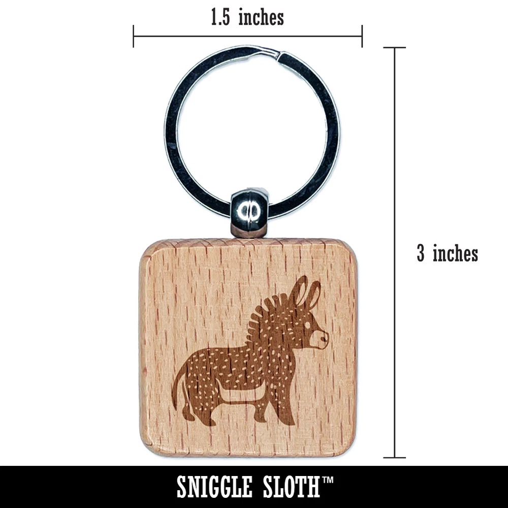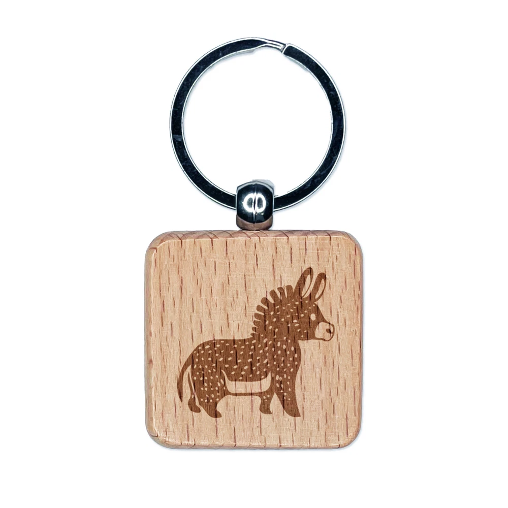 Cute Chubby Donkey Mule Engraved Wood Square Keychain Tag Charm