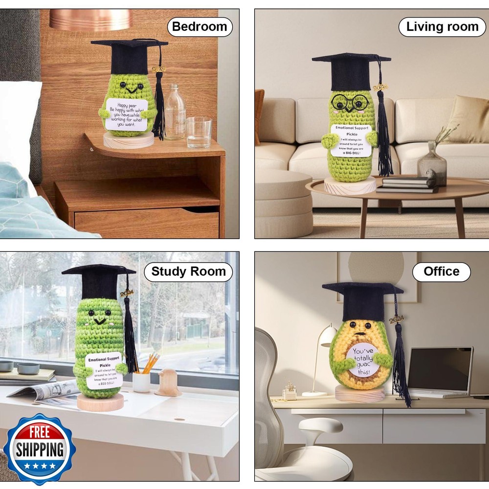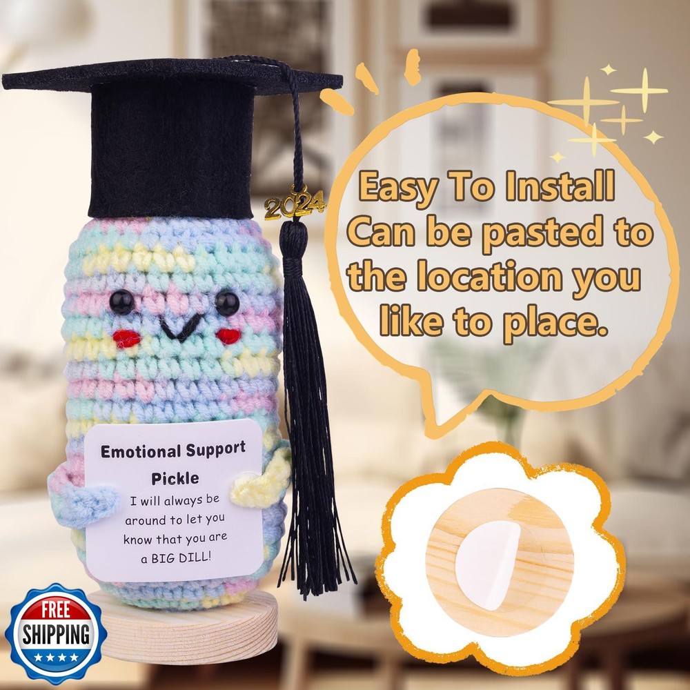 CoFuBcad Graduation Gift Emotional Support Cucumber Graduation Cap Gift, Cute Knitted Crochet Cucumber Doll with Doctoral Hat Toy with Room Decoration(A6) Features 🎓Celebrate Important Moments: For students of any age group, graduation is an unforgettable moment, celebrating this important moment with family and friends, this emotionally supportive cucumber kimchi can be a great gift, perfect for placing on your desk, bedroom, or wherever you like. It's a fun toy graduation gift that adds color to this important moment in life. 🎓Perfect Gift:Our cucumber graduation hat knit doll with emotional support and encouragement cards is an essential and perfect gift for family and friends, or for celebrating important moments of graduation. It comes with positive words of encouragement and support, bringing joy and happiness to both our loved ones and those who love us. 🎓Cute Design: You will receive a cucumber graduation cap knitted doll with a card printed with the positive word. each crochet doll is handmade by craftsmen, soft and comfortable, durable and sturdy. the beautiful knitted pattern and bright colors make it a funny graduation gift souvenir, and can also be used to decorate your home, office, and party. 🎓Funny Crochet Potato Doll : This Crochet potato doll with an encouragement card and graduation cap, as a graduation gift for him, a Middle school graduation gift, and a High school graduation gift. university graduation gift, master's degree graduation gift, at every graduation moment, emotional support pickle crochet knitted doll is a precious souvenir to celebrate this important occasion. 🎓Widely used: Emotional support kimchi can be a great gift or room decoration, not only on the desk, bookshelf, or in the room but also on the dashboard of a car, adding a cute and interesting atmosphere. Moreover, a crochet doll with a graduation hat is a delightful graduation gift for oneself, family, and friends. Shipping Free & Fast Shipping: We offer free shipping to most of the USA with a normal delivery time of 3-7 days. However, due to the current situation, additional delivery time (up to 3 weeks) may be required for some items. Alternative Carriers: We may use alternative carriers (e.g., USPS, FedEx, UPS) to ensure your package arrives safely and on time. Due to the use of multiple carriers, we are unable to provide a tracking number automatically. Handling Time: Orders are processed and shipped within 1-2 business days of receiving cleared payment. Shipping Restrictions: Shipping to Alaska, Hawaii, Puerto Rico, Guam, and other US territories may incur shipping charges or delivery restrictions. Please contact us before ordering, or your order can be refunded/cancelled. State Restrictions: Certain items may not be shipped to California due to state regulations. Contact for Tracking Updates: If you require tracking updates or have any concerns about the delivery of your order, please feel free to contact us, and we will be happy to assist you. Return Policy 30-Day Hassle-Free Returns: If you are not completely satisfied with your purchase, you can return the item for free within 30 days of receiving it for a full refund or exchange. Easy Return Process: Contact us, and we will provide you with a prepaid return shipping label and detailed instructions. No Restocking Fee: There are no restocking fees for returns. However, the buyer is responsible for return shipping costs if the return is not due to a seller"s error. Refund Processing: Refunds will be processed within 1 business day of receiving the returned item in its original condition. Feedback Your feedback is extremely important to us. We strive to provide the best products and customer service possible. If you are satisfied with your purchase, please take a moment to leave us a positive review. If you have any concerns or issues with your order, please contact us before leaving negative feedback. We are committed to resolving any problems and ensuring your satisfaction. Contact Us If you have any questions or concerns, please feel free to reach out to our customer support team. You can contact us through the eBay messaging system. We are available Monday to Friday, 9:00 am to 5:00 pm EST, and we will do our best to respond to your inquiry within 24 hours. Thank you for supporting our small family business!
