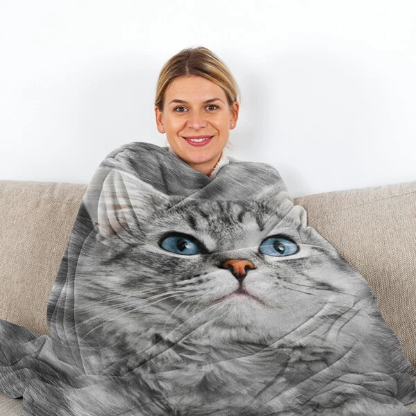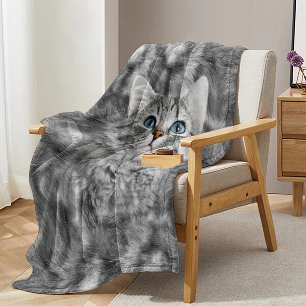 Cute Fleece Cat Blanket for Cat Lovers - Soft Flannel Throw for Women & Girls