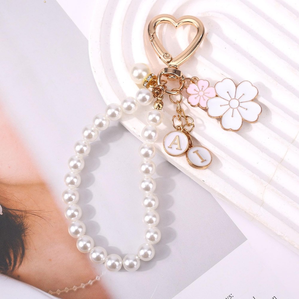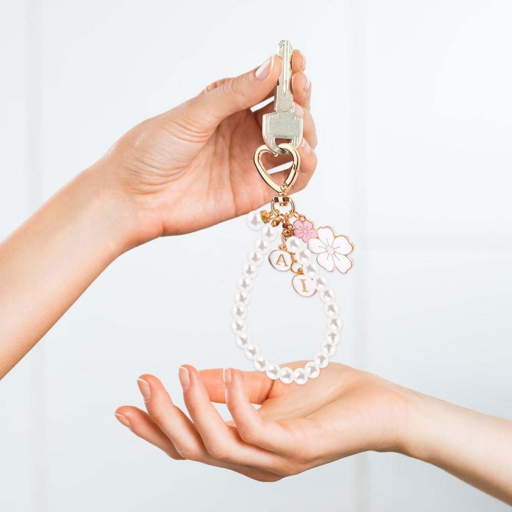2pcs Elegant Bow Keychain with Pearl Charm for Women Car Keys