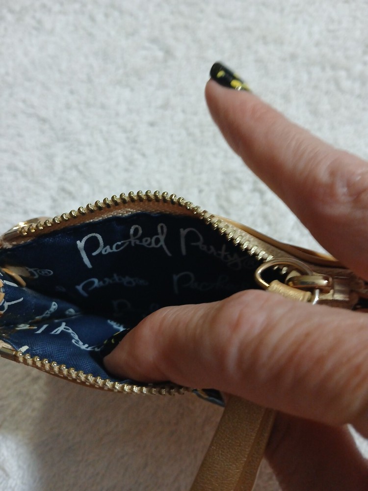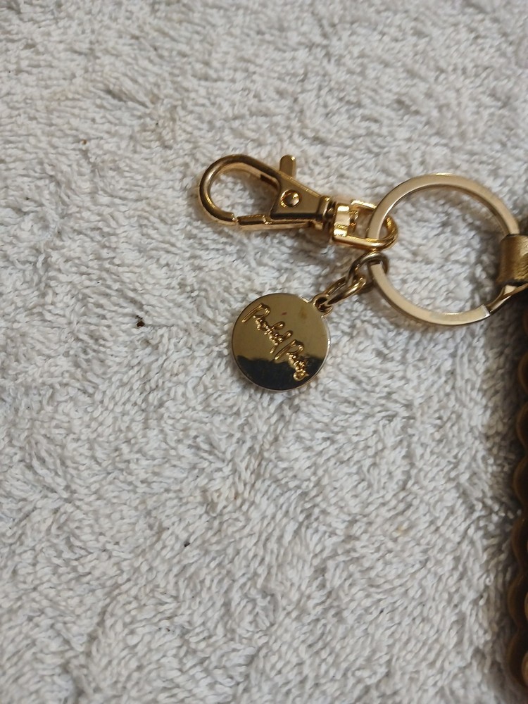 This adorable gold keychain cardholder coin purse is perfect for any child star or party fun money Wallet. Made of faux leather and acrylic material, this XS size wallet features a geometric pattern with a zipper and logo accents. The zip-around style and money theme make it a great addition to any woman's accessories collection. With credit card slots and a packed party fund, this wallet is both functional and fashionable. The gold color and leather fabric type add a touch of luxury to any outfit. Whether you're looking for a small wallet for your everyday essentials or a fun accessory for a night out, this Money brand wallet is the perfect choice.