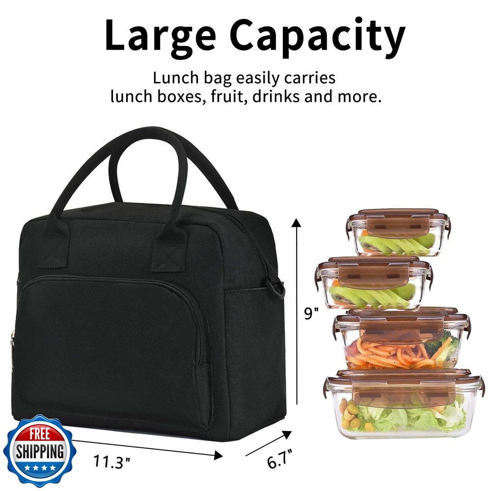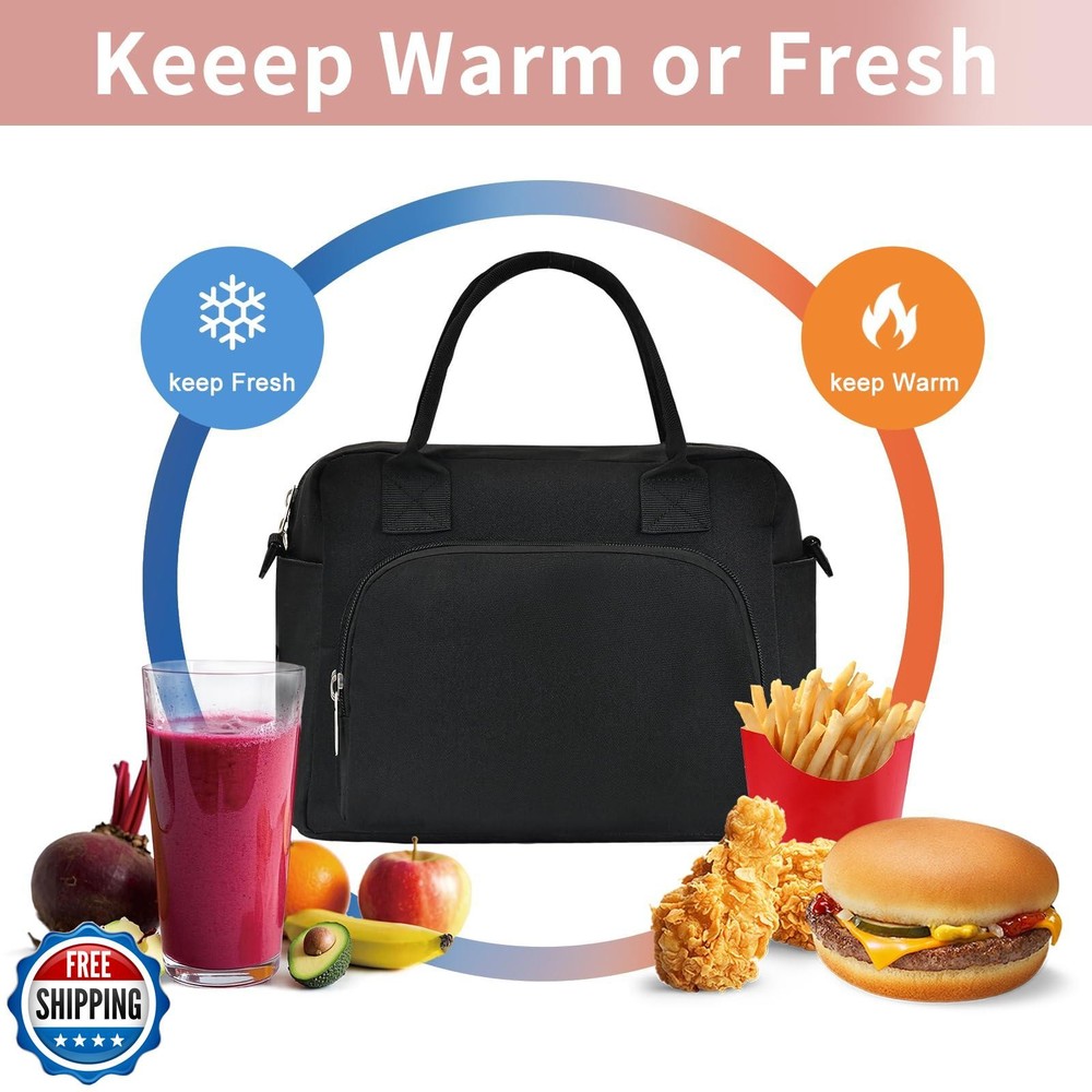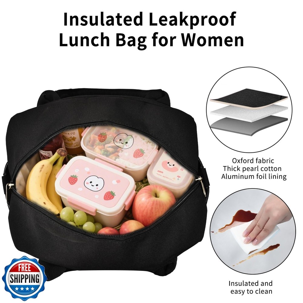OYLOLA Lunch Bag Women Lunch Box for Women Adult Cute Insulated Lunch Bag Lager Cooler Lunch Tote Bags for Work Picnic (Black) Features 【Insulated Lunch Bag】OYLOLA lunch box is made of soft and durable corduroy waterproof fabric, and the interior is made of thick inner heat insulation and leakage prevention material and foam insulation material, which can keep the food warm and fresh for a long time, leakproof even with ice inside. 【Large Capacity】Lunch box for women measures 11.3"(L)*6.7"(W)*7.9"(H), lunch bag including a zipper main compartment to keep food fruits warm and fresh, two side pockets for water bottles and drinks, front zipper insulated pocket for snacks or utensils, an open pocket on the back for cell phones and other items that need to be easily accessible. Multiple pockets allow you to keep your belongings organized. 【Soft ang Durable】Lunch bag for women reinforced stitching on the handle and shoulder strap ensures that the lunch box can be used for a long time, and the PEVA foil lining is abrasion-resistant and dirt-resistant, so it can be cleaned with a simple wipe of a tissue. 【Portables Lunch Bag】OYLOLA Lunch Bag is a perfect combination of fashion and practicality, with cute strawberry bento bag and watermelon and other patterns, the detachable adjustable shoulder strap makes the lunch bag can be used as a tote bag shoulder bag and crossbody bag.The perfect lunchbag choice! 【Gifts for Women】OYLOLA Lunch bag for women suitable for various occasions, such as work, beach, picnics, office, etc. An ideal gift for women ,friends, wife, girls, mother and her on Valentine's Day, Christmas, birthdays. Shipping Free & Fast Shipping: We offer free shipping to most of the USA with a normal delivery time of 3-7 days. However, due to the current situation, additional delivery time (up to 3 weeks) may be required for some items. Alternative Carriers: We may use alternative carriers (e.g., USPS, FedEx, UPS) to ensure your package arrives safely and on time. Due to the use of multiple carriers, we are unable to provide a tracking number automatically. Handling Time: Orders are processed and shipped within 1-2 business days of receiving cleared payment. Shipping Restrictions: Shipping to Alaska, Hawaii, Puerto Rico, Guam, and other US territories may incur shipping charges or delivery restrictions. Please contact us before ordering, or your order can be refunded/cancelled. State Restrictions: Certain items may not be shipped to California due to state regulations. Contact for Tracking Updates: If you require tracking updates or have any concerns about the delivery of your order, please feel free to contact us, and we will be happy to assist you. Return Policy 30-Day Hassle-Free Returns: If you are not completely satisfied with your purchase, you can return the item for free within 30 days of receiving it for a full refund or exchange. Easy Return Process: Contact us, and we will provide you with a prepaid return shipping label and detailed instructions. No Restocking Fee: There are no restocking fees for returns. However, the buyer is responsible for return shipping costs if the return is not due to a seller"s error. Refund Processing: Refunds will be processed within 1 business day of receiving the returned item in its original condition. Feedback Your feedback is extremely important to us. We strive to provide the best products and customer service possible. If you are satisfied with your purchase, please take a moment to leave us a positive review. If you have any concerns or issues with your order, please contact us before leaving negative feedback. We are committed to resolving any problems and ensuring your satisfaction. Contact Us If you have any questions or concerns, please feel free to reach out to our customer support team. You can contact us through the eBay messaging system. We are available Monday to Friday, 9:00 am to 5:00 pm EST, and we will do our best to respond to your inquiry within 24 hours. Thank you for supporting our small family business!