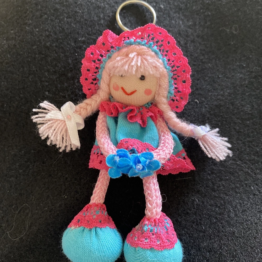 Cute Mini Doll Key Chain Cell Pendent Backpack Charm/Braids Bonnet Bright pink