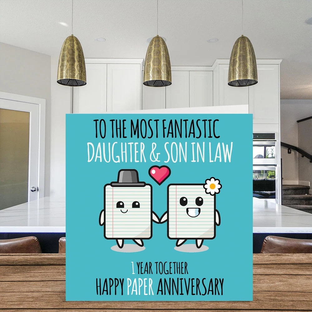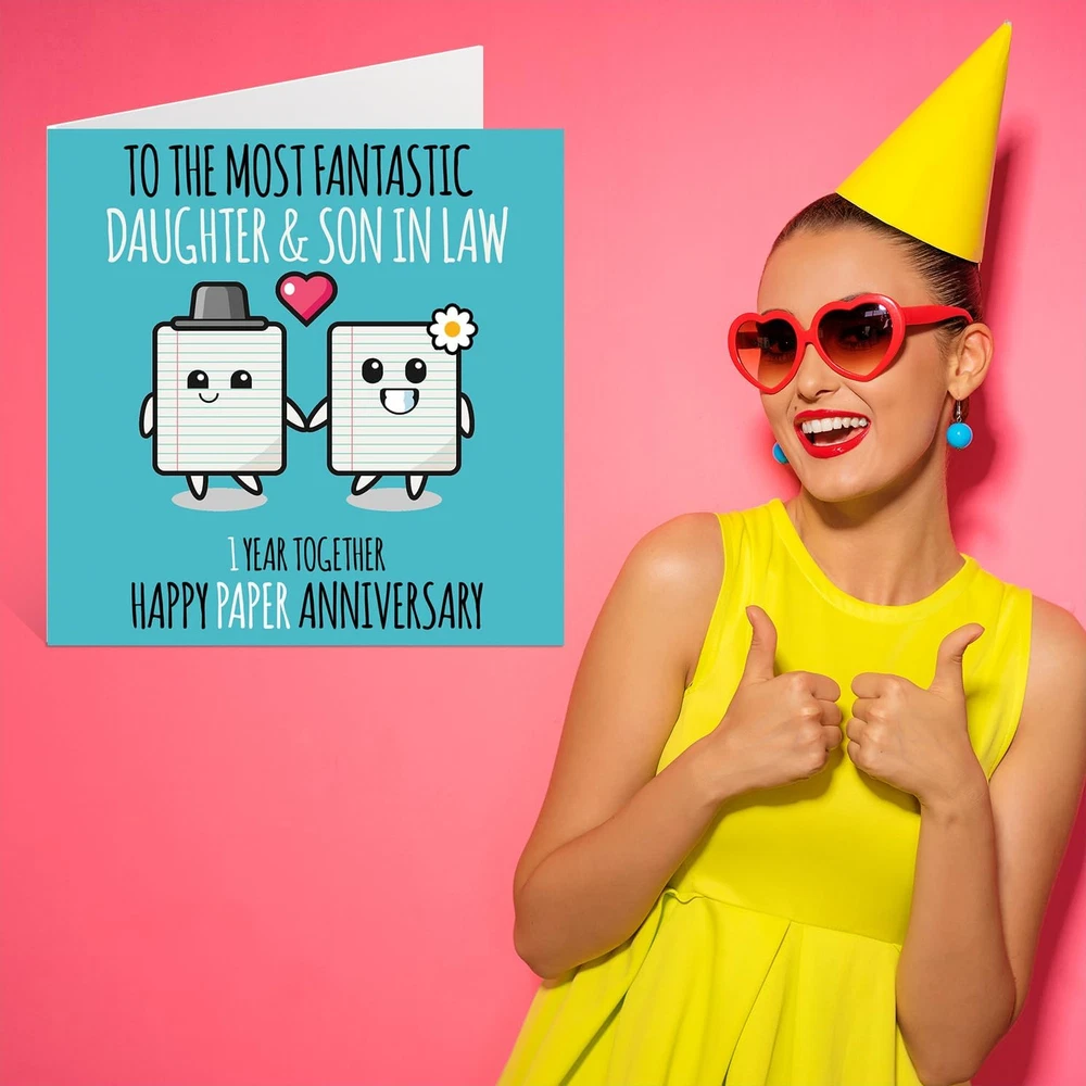 Store New Arrivals Add to Favorite View Feedback Contact Cute Paper Anniversary Card for Daughter & Son in Law - 1 Year Together - Happy 1St Wedding Anniversary Cards for Son in Law Daughter, 5.7 X 5.7 Inch Greeting Cards for First Anniversaries Description Item model number GCARD-145-PAPAN2-DS01-FBA Sheet Size 145 x 145 Number of Items 1 Color Daughter & Son in Law 01 Material Type Cardstock Manufacturer Part Number GCARD-145-PAPAN2-DS01-FBA Style Daughter & Son in Law 01 Item Weight 0.704 ounces Shape Square Pre-printed Happy Anniversary Product Dimensions 5.71 x 5.71 x 0.04 inches Size 145mm x 145mm MAKE THEM SMILE WITH THIS CUTE ANNIVERSARY CARD: This exceptional quality anniversary card for her or him shows the design of a cute a paper couple with the words "To The Most Fantastic Daughter & Son In Law, 1 Year Together, Happy Paper Anniversary". If you are looking for cute anniversary cards then this card is bound to make them smile. This could also be for Boyfriend, Girlfriend, Partner, Husband, Wife, or Companion. WHAT DO YOU GET: The card is printed on one side and BLANK ON THE INSIDE to allow you to write your very own message. The unique elegant design is printed on a specially sourced and environmentally responsible board. At 360 microns thick and 300gsm the natural white one-sided gloss board has a quality look and feel. Supplied with a coloured gummed envelope to complement the design and ready to be sealed and sent in the post. NO SMUDGES: There is nothing worse than writing inside a card to find that the shiny surface makes the smudge. This is why we use a high quality one sided coated board. The uncoated side will absorb more of the from your pen to make smudging a thing of the past. SIZES: Greeting Card = 5.7 Inch x 5.7 Inch, Envelope = 6.1 Inch x 6.1 Inch, Card Thickness = 360 micron. Daughter & Son in Law 1st Anniversary Card, Daughter 1st Anniversary Card, Son in Law 1st Anniversary Card. MADE AND QUALITY CHECKED IN THE UK: We print and manufacture all our product right her in the UK so you can be sure of a fast turnaround and a product that is expertly made. Using the very best Forest Stewardship Council certified board our card is conscious of the responsible management of the world's forests. Product Description Celebrate with Joy and Laughter Presenting our exquisite collection of anniversary cards, designed to commemorate love and lasting bonds. We know how significant it is to find the perfect card that captures the essence of this special milestone. Our anniversary card range offers a delightful selection of heartfelt, romantic, and sentimental designs that evoke smiles and evoke cherished memories. Whether it's a first anniversary or a golden jubilee, our cards add a touch of elegance and warmth to celebrate their enduring love. Delivering 4 Every Occasion Since 2014 Based in Bury St Edmunds, Suffolk, our journey began in 2014 as a small printing specializing in personalized printing on mugs, garments and for phones. Designing and printing have always been at the core of our passion so within a few years, we expanded our product range to include printed greeting cards. From birthdays and anniversaries to weddings and engagements, our beautifully crafted cards will help you express your emotions with elegance and flair. Join us on this creative journey as we continue to explore new avenues in design and printing excellence, always striving to exceed your expectations. Celebrate Every Occasion Celebrate special moments with our versatile greeting cards selection! Birthdays, anniversaries, engagements, weddings, housewarming, new job, new baby, retirement and more - our unique designs have you covered. Spread joy, love and laughter with our wide range of occasion-specific cards. Perfect for every celebration! Hand Picked and Packed Every greeting card is handpicked and packed with utmost care. Our dedicated team takes great pride in curating a selection of high-quality cards. With our handpicked and packed greeting cards, you can create meaningful connections and make someone's day truly unforgettable. Crafted In The UK Meticulously designed and printed in the UK by a small business driven by care and pride. We pour our heart into every design, ensuring that our high-quality products bring joy and touch hearts. Celebrate special moments knowing that each card is made with love and a commitment to excellence. Policy on Product Sourcing and Fulfillment Dear Valued Customers, We would like to clarify an important aspect of our business operations to ensure transparency and trust in our relationship with you. Product Fulfillment: Fulfillment by Amazon (FBA): The products are stored in Amazon Fulfillment Centers. This storage solution ensures that the inventory is kept in a secure and climate-controlled environment, which helps maintain the quality and safety of the products. Efficient Delivery: Utilizing Amazon's fulfillment services allows us to leverage their robust logistics network to provide you with fast and reliable shipping. This means you receive your purchases in a timely manner with the added assurance of Amazon's trusted delivery systems. Customer Assurance: Quality Control: Every product is carefully selected and undergoes rigorous quality checks before being listed for sale. Our commitment is to provide you with high-quality items that meet your expectations. Secure Storage: Amazon's Fulfillment Centers are renowned for their high standards of security and efficiency. Your products are stored safely until they are shipped to you. Customer Support: Should you have any questions or concerns regarding your purchase, our customer support team is readily available to assist you. We are dedicated to ensuring your satisfaction with every transaction. We appreciate your business and are committed to providing you with a seamless and satisfactory shopping experience. Thank you for your trust and understanding. Sincerely, -Manager- Shipping Policy and Expectations