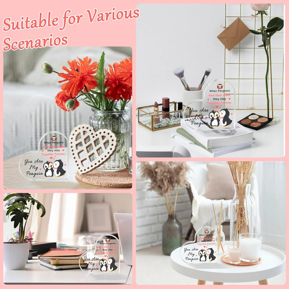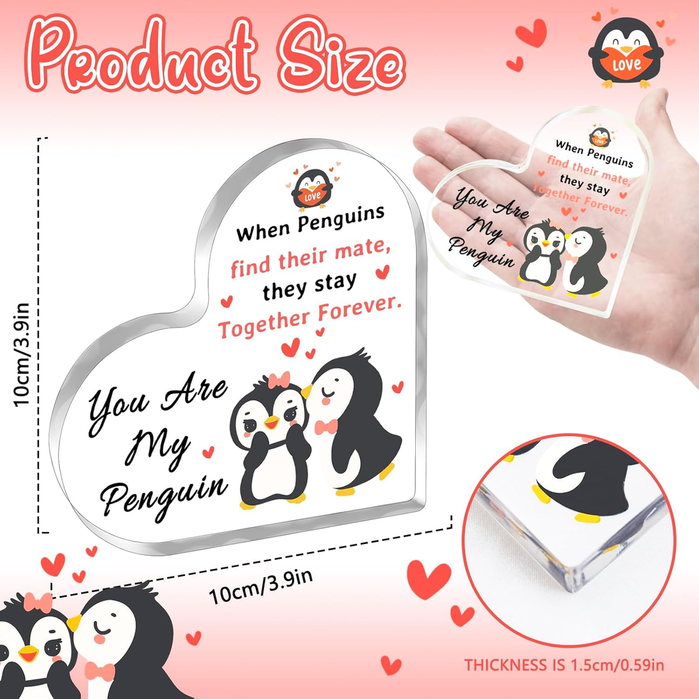 Penguin Valentine Gifts Penguin Valentines Day Gift for Her Girlfriend Wedding Gifts for Couple Wife Husband Birthday Gifts for Boyfriend Girlfriend Anniversary Acrylic Plaque for Men Women 1.Romantic Gifts for Her or Him: Gifts for boyfriend, or girlfriend in the shape of a love heart, features the sweet sentiment, "When Penguins find their mate, they stay together forever. You are my penguin," making it a perfect expression of love 2.Penguin Valentines Decor: Perfect gifts for your wife, husband, lover, fiancee, girlfriend, or boyfriend on weddings, anniversaries, birthdays, Christmas, Valentine's Day, Thanksgiving, and other special occasions 3.Perfect Valentine Decoration Gifts: Beautiful heart-shaped paperweight adorned with cute penguins, creating a romantic and cozy atmosphere. It can also serve as a decoration for birthday or wedding anniversary parties, adding a touch of new style to your life 4.Personalized Gifts for Couples: I love you gifts for him are made of high-quality acrylic, hand cut, durable than glass, lightweight, tasteless, and reliable 5.I Love You Gifts for Him: As a gift for him/her to express his/her love, the flat bottom design makes it easy to stand upright on a flat surface without any support, such as a dining table, bedroom cabinet, bathroom, fireplace, and so on Introducing our Romantic Penguin Heart Plaque, a delightful and heartwarming gift idea for couples celebrating any special occasion. This unique acrylic sign features a charming design with two adorable penguins nestled together in a heart shape, surrounded by love hearts. The sweet message, "When Penguins find their mate, they stay together forever. You are my penguin," adds a personal and romantic touch to the gift. Perfect for girlfriend, wife, boyfriend, or husband, this sentimental gift is a wonderful way to show your deep affection and commitment. It's also a great choice for long-distance relationships, serving as a reminder of your undying love and bond. Don't miss out on this opportunity to make your special someone feel loved and appreciated. Order our Romantic Penguin Heart Acrylic today and add a touch of romance to your next celebration! Item Weight 0.018 ounces Color Pink-penguin Country of Origin China Package Dimensions 1 x 1 x 0.5 inches Shipping Fast shipping is very important for us. Our standard US shipping service is FREE. Your order will be shipped within 2-3 business days upon full payment received. Your order will be delivered within 2-3 business days after the handling time. We only ship to the confirmed PayPal address. We reserve the right to cancel any order for any reason at any time. We are not responsible for undeliverable addresses. Returns and payment We offer a 30 days return policy from checkout winning date. We allow only PayPal as payment method FeedBack Your feedback very important to us, after you get your package and you are satisfied with our service please leave us positive feedback If you have any problem with your order / any questions please before leave any type of feedback For any questions, using eBay contact system Please visit our eBay store to check out other items for sale! Thank you for shopping at our store.
