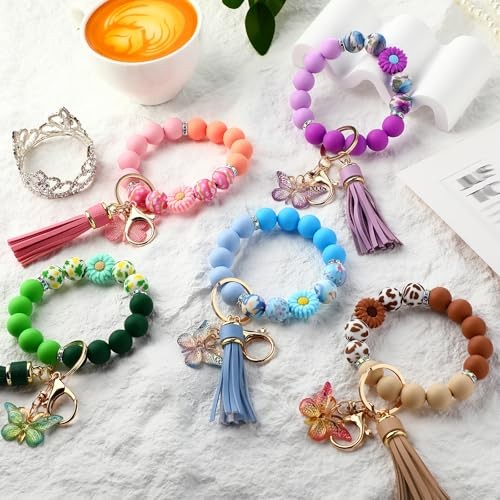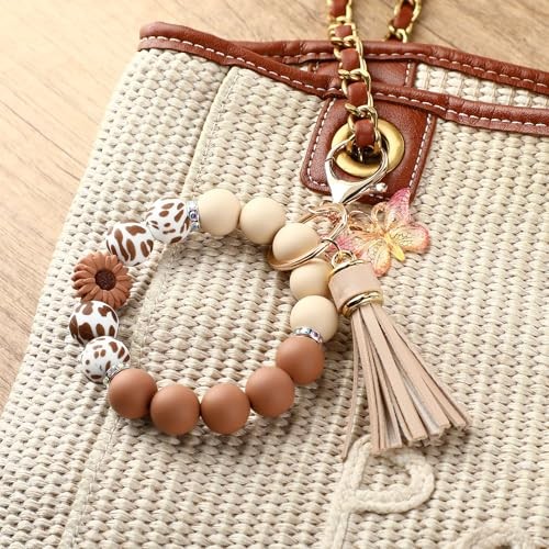 Beaded Silicone Wristlet Keychain Bracelet for Women - Stylish Key Ring Holder