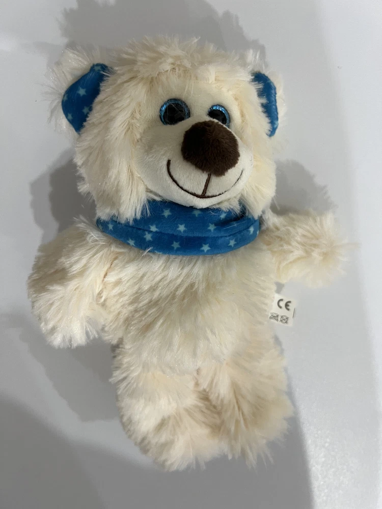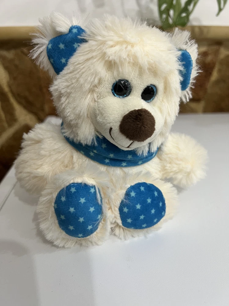 Cute Polar Bear Plush Toy – Soft, fluffy, and cuddly in white with blue accents. Perfect for kids or plush toy lovers. A charming stuffed animal to brighten any collection or as a thoughtful gift!