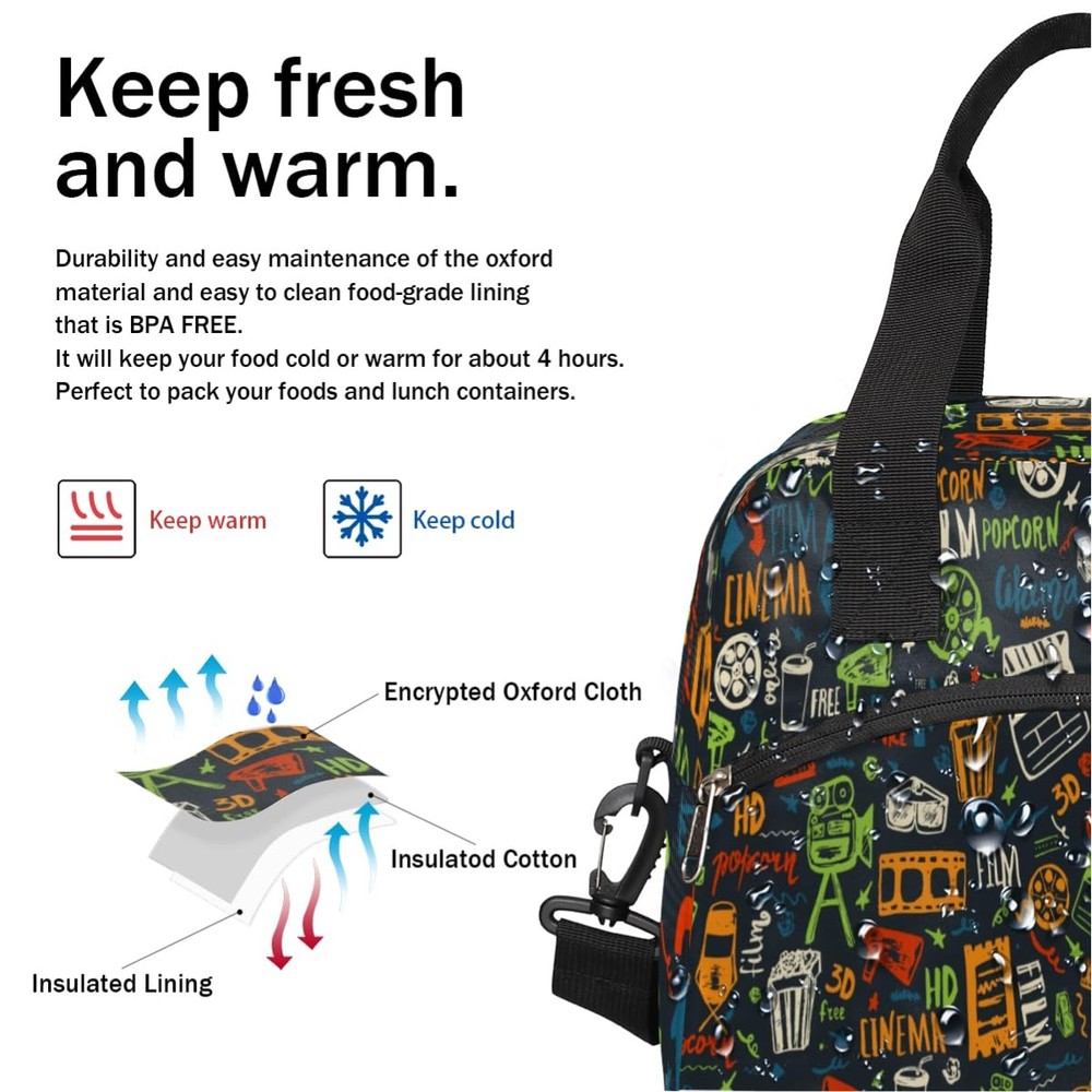 We specialized in 3D pattern theme customize, please contact us by email in picture 6000 x 6000 pixel if you want to customize your lunch bag. We will produce it for you. Production Description External material: durable waterproof oxford cloth Internal material: high-quality aluminum film (PET aluminum + PEVA) Size: 11.8x7x10.2 inches,0.61lb Package Included: 1 * lunch bags Craft from high-density oxford cloth and thickened aluminum foil, lunchbox with small shape but large capcity. Keep your food warm and fresh.The double smooth zipper of small lunch bag offers effortless access to your food. Lunch bag for men with sturdy handle and removeable and adjustable shoulder strap which is portable and lightweight to carry. Versaitle Occasion available, it is suitable for office, work, picnic, beach, travel and more. Washing Instruction: Wipe with a damp cloth or gently brush off. Do not wash in hot water, No iron, No machine wash, No wring. Service: please do not hesitate to contact us if for any reason you are unsatisfied with our , we will reply to you within 24 hours. [Superior Material]: The insulated lunch bag is made of encrypted oxford cloth and thickened aluminum foil of three layers of insulation, which can keep your food warm and fresh for 5 hours. The double smooth zipper of small lunch bag offers effortless access to your food. This reusable lunch bag can let you enjoy fresh food and drinks all the time. [Large Capacity]: Dimensions: 11.8x7x10.2 inches,0.61lb. This roomy compartment of insulated cooler bag can perfectly accommodate your lunch boxes, fruit, snacks, and drinks. The front zipper pocket holds your small essentials such as keys, cards, cell phone, napkins, and other small items. [Widely Use]: The lunch box containers with sturdy handle and removeable and adjustable shoulder strap which is portable and lightweight to carry. You can carry the bag by handle, and it could be used as crossbody bag, tote bag, and shopping bag. It is suitable for office, work, picnic, beach, travel and more. [Gifts Option]: The lunch containers for adults can be used as a gift for pattern lovers. This vibrant and practical gift that can be given to family or friends on Thanksgiving, Christmas, Birthday, Valentine's Day, etc. [Easy to clean]: With the food-grade PEVA material lining, if the sauce spill inside, just wipe it off with damp cloth or napkins, saving your cleaning time. This insulated lunch box is not only resistant to tear and abrasion, but also leakproof and waterproof.