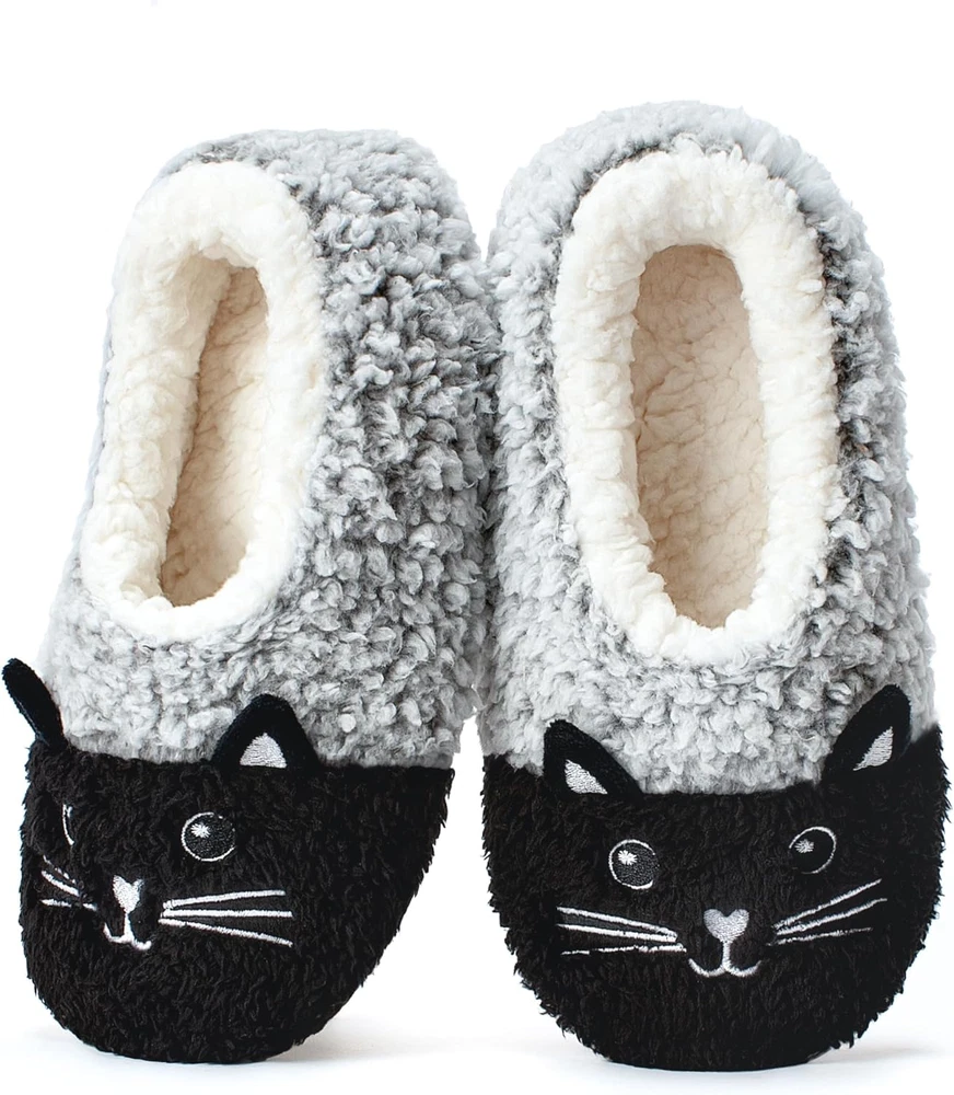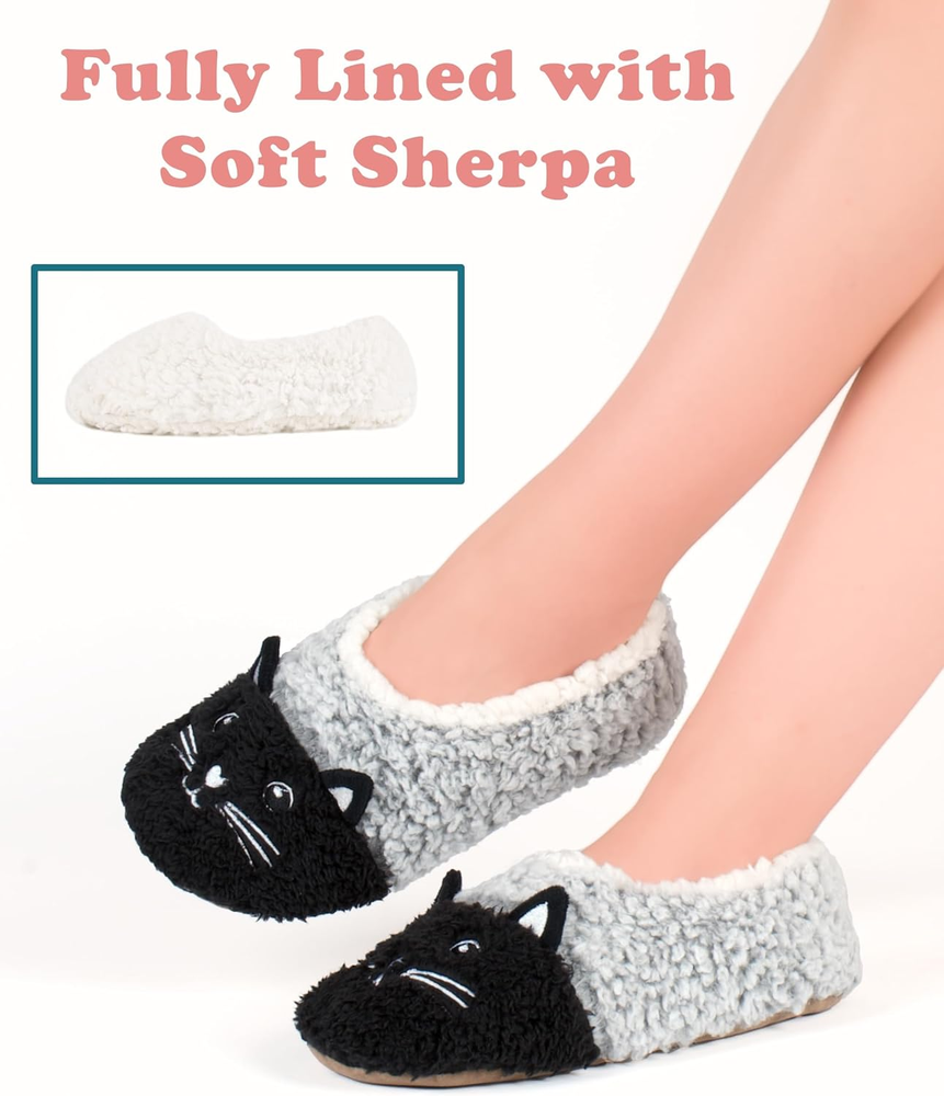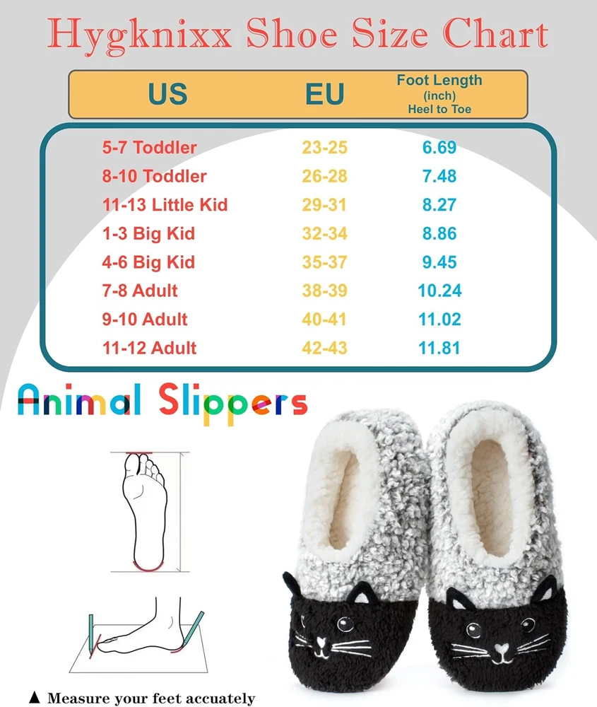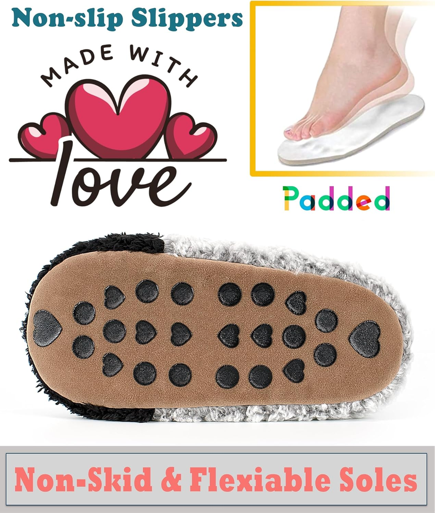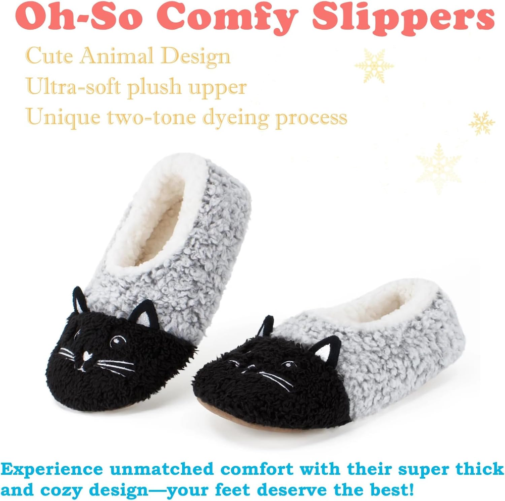 Cute Slippers for Women & Kids, Fuzzy Animal Slipper Socks with Non-Slip Soles,