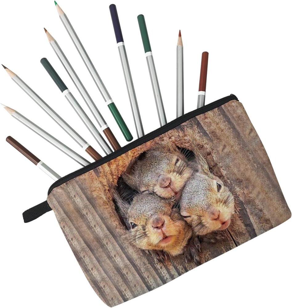 Squirrel Cosmetic Bag for Women Cute Small Makeup Bag for Purse Travel Toiletry Zipper Pouch for Girls Gift for Sisters Squirrel Makeup Bag for Her Product Details Product Dimensions: 8.65 x 2 x 5.35 inches Item Weight: 0.634 ounces Department: Unisex Manufacturer: Livel lhood Country of Origin: China Item model number: 275-3 1.Durable Material: The Squirrel cosmetic bag is made from soft Polyester with a metal zipper. It's soft, smooth, hardy and durable, and has a high quality. It's easy to clean with a lightweight which means easy to carry. 2.Fashion Design: The Squirrel cosmetic bag has a clear and vibrant design, double-sided printing. There are different kinds of cute, lovely, funny and beautiful patterns to choose. The makeup bag fits both the popular aesthetic and unique personalities. 3.Good Size:8.65 in* 2 in* 5.35 in. 25 grams weight. The cosmetic bag is easy to carry make-up tools like lipsticks, eye shadows, brushes, sunscreens, etc. The makeup bag is also able to carry stationery, medicines, coins, cards and other personal effects. 4.Fits: Makeup bags and gifts for women, girls, animal lovers, friends, teenagers, family members on Christmas, New Year, Mother's Day, Thanksgiving, Valentine's Day and other holidays as well as birthdays and memorial days. Receiving a gift like this bag will make her happy. This is also a good way to express love and show her or their personalities. 5.Applicable Occasion: Ideal for travel, vacations, business trips, gyms, camping and other outdoor activities. These cosmetic bags can be used as makeup bags, coin purses, cellphone pouches, medicine storage bags and so on.