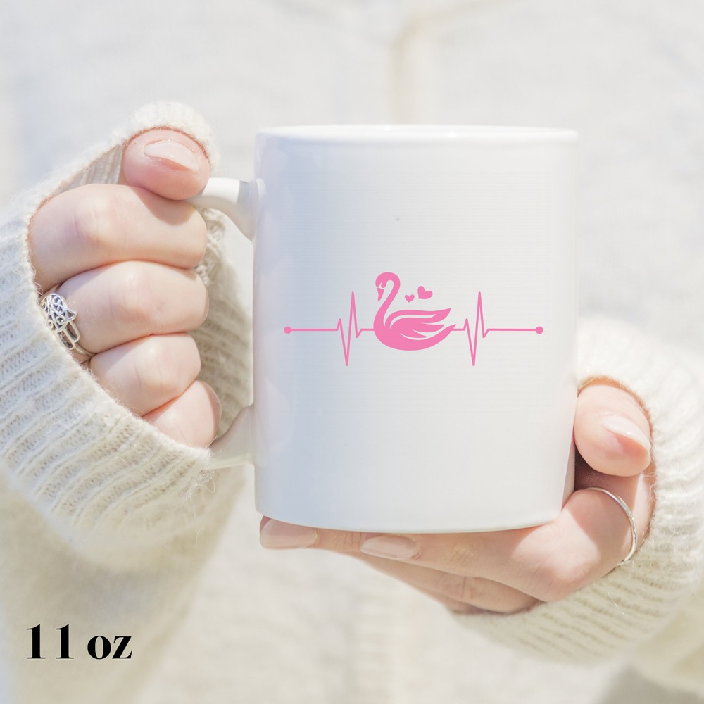 Swan Heartbeat Mug Swan Mug Swan Lover Mug Cute Swan Gift Swan Lover Gift Swan Product Details.. This high quality 11oz. ceramic white mug has a premium hard coat that provides crisp and vibrant color reproduction sure to last for years. Perfect for all hot & cold beverages. The highest quality printing possible is used. It will never fade no matter how many times you wash it. Material: 100% Ceramic. Print both sides. Dishwasher and Microwave Safe. High Gloss + Premium White Finish. Printed in the U.S.A. Personalized & Custom. We support personalized and custom mug to add custom, when placing an order, you can add notes to the "order note" in shipping address section. Also you can contact us directly via message. Shipping Info. Ready to ship in 1 to 2 business days, All products are made-to-order and proudly printed in the United States. Shipped by USPS and DHL, You will receive your order in 5-7 days. Replace & Refund. All products are defective during shipping broken, chipped will be replaced free of charge. You are not satisfied with the product, we will refund 100% money to you. If any other issues arise, please do not hesitate to message, we would be more than happy to assist you.