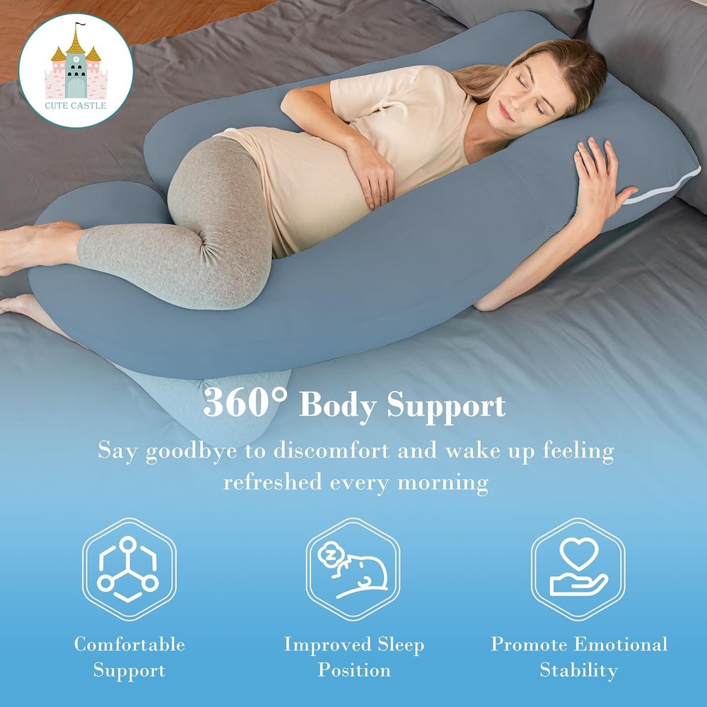 Free eBay listing template designed by dewiso.com Cute Castle Cooling Cover Pregnancy Pillows, Soft U-Shape Maternity Pillow with Removable Cover - Full Body Pillows for Adults Sleeping - Pregnancy Must Haves - Jumbo 57 Inch - Grey FREE AND FAST SHIPPING! About this item Experience the Ultimate Comfort - Embrace yourself in the soft, huggable design of the Cute Castle full body pillow. Say goodbye to multiple bed pillows and hello to complete head-to-toe support. Feel the perfect alignment as it conforms to your body, providing unparalleled comfort for your head, back, belly, sides, knees, hips, and feet. Rejuvenating Sleep with Cute Castle Maternity Pillow - Elevate your sleep experience with our pregnancy body pillow. Enjoy improved blood circulation and relief from back soreness, hip pain, and leg swelling. Expecting mothers can indulge in exceptional comfort and quality rest, while releasing the body pressure for a rejuvenating night's sleep. Sleep on Cloud Every Night - Our pregnant pillow is crafted with premium polyester to offer the ideal balance of comfort and support for your entire body. No need to toss and turn, as it maintains its shape night after night. With its durability, you can enjoy the sensation of sleeping on a cloud each time you use it. Versatile Functionality - The Cute Castle u-shaped pregnancy pillow provides the flexibility to accommodate various positions, whether it's for nursing, watching TV, or reading. Easily adjust the support to different areas of your body, giving you the freedom to experience optimal comfort in any situation. Perfect Pregnancy Pillow - Designed for both side and back sleepers, this body pillow is a versatile addition to any sleeping arrangement. It offers relief from a range of discomforts including pregnancy-related issues, sciatica, fibromyalgia, gastric reflux, back pain, ankle pain, and more. A thoughtful and practical gift suitable for anyone seeking blissful, pain-free slumber. Product We offer a 30-Day Return Policy on items which you are not completely satisfied with. You have the option for a full-refund or an exchange of the item. No returns are available on items shipped outside of the US . Shipping We offer Free Shipping to the US and ship within 2 business days of payment, usually sooner. We use UPS express shipping. That's why your products are usually delivered within 3 days . Contact We try our very best to make sure every customer is completely satisfied. If there's a problem , message us! We're happy to help. 24/7 live chat available.