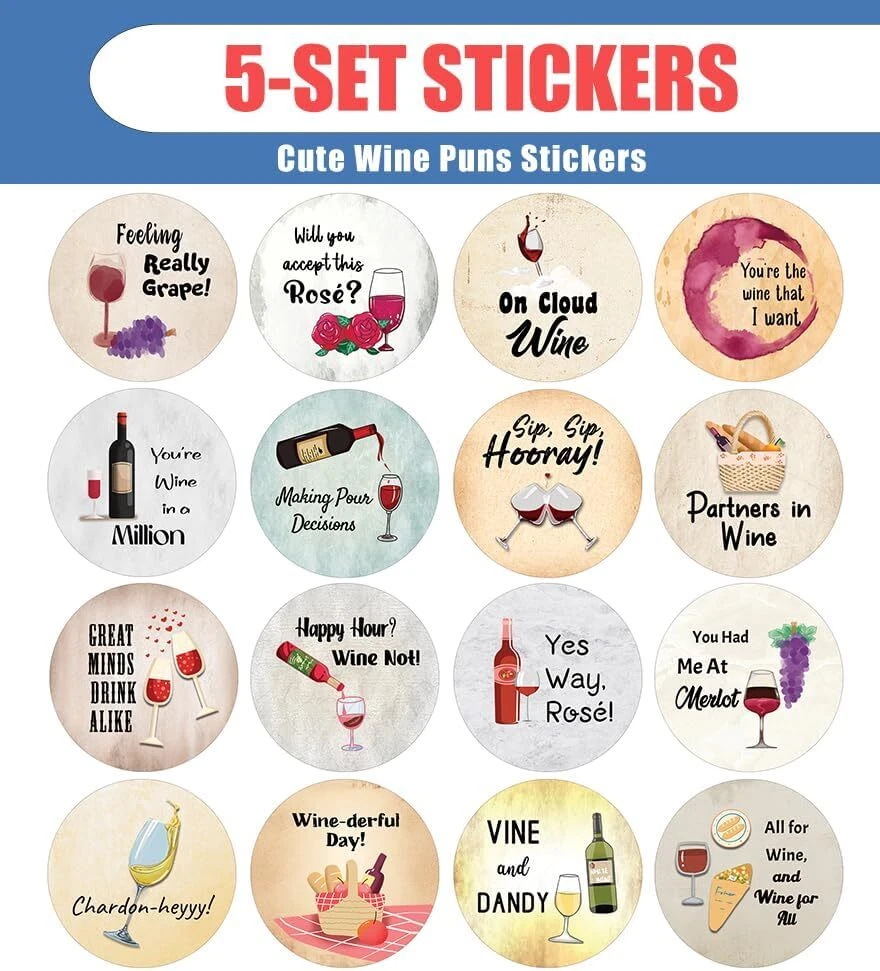 16 UNIQUE DESIGNS INSPIRING STICKERS FOR YOUR DIY PERSONALIZED DECORATIONS - Creanoso Cute Wine Puns Stickers (5-Sheets). These colorful and uniquely inspiring round shaped stickers are the best tool for DIY decoration and personalization of your belongings. GREAT STOCKING STUFFERS , TEACHING SUPPLEMENTARY MATERIALS, AND GIVEAWAY - Great stocking stuffers gifts for Boys, Girls, Teens, Kids. A perfect design to give during classroom school activities, home schooling,birthdays, anniversaries, family day, and any other special occasions. MADE WITH DURABLE AND WATERPROOF MATERIALS - There is a lamination or coating to make the stickers high water resistant, and WILL NOT fade from the water. The stickers can stick it anywhere you like, and it sticks there and lasts a long time. A COLORFUL AND DECOR STICKER DECAL - Each sheet with 16 individual round stickers. There are 5 sheets , with a total of 80 pcs of stickers. STICKER SIZE: 1.5 INCHES IN DIAMETER Cute Wine Puns Stickers (5 Sets X 16 Designs) COLORFUL AND COLLECTION OF TEXT STICKERS • Well designed. • Very encouraging. • Self-adhesive. Cute Wine Puns Stickers (5 Sets X 16 Designs) are super fun to collect; you can't have just one! That's why you will find a selection of stickers right here. Each package comes with different stickers in a variety of designs. Stick them here, stick them there, stick them everywhere! Everyone will love these self-adhesive stickers. These colorful stickers are perfect for any adults and these come with very inspiring messages and bright pictures. A fun, inexpensive way to add a decorative, notes, and stationery. Delight yourself with uplifting messages designs that are very encouraging. Cute Wine Puns Stickers (5 Sets X 16 Designs) perfect for giveaways, behavior incentives, prizes! These stickers are acid-free, nontoxic, and safe for use on photos. This product comes with a 60 days money back guarantee. You can return them to us for a full refund.