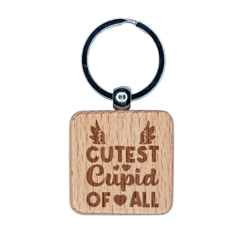 Cutest Cupid of All Valentine's Day Engraved Wood Square Keychain Tag Charm