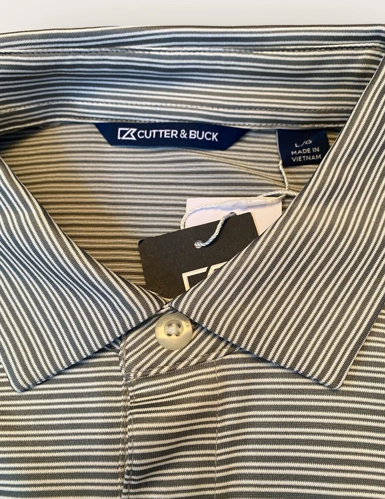 New with Tags! Cutter & Buck Shirt Men’s Large Gray Stripe Performance Golf Polo Collared Short Sleeve Embroidered Logo on Sleeve NEW Questions? Ask before purchasing! Our merchandise is carefully selected by myself, but please understand that not all items are new. Most are preowned and preloved and will be described as such in the description. See photos for rough measurements; Due to light & screen variations, colors may vary slightly from the images. Items have been cleaned according to ebay’s guidelines and ship from a smoke free pet free location.