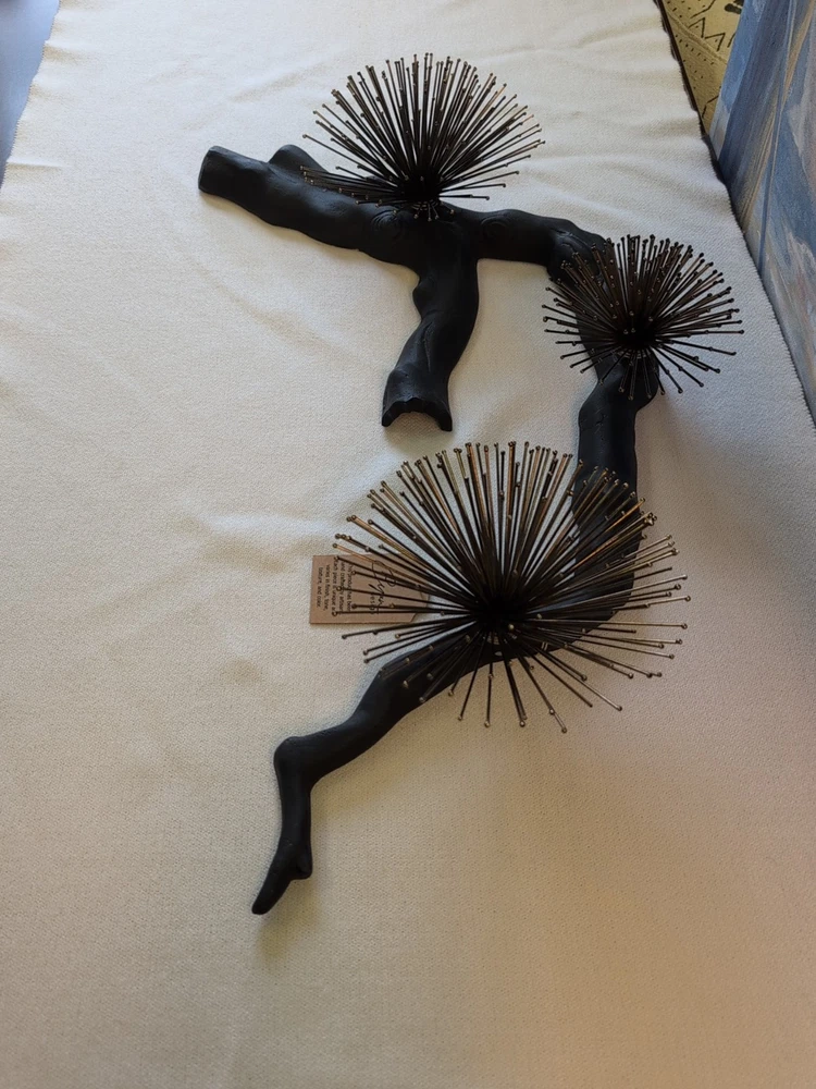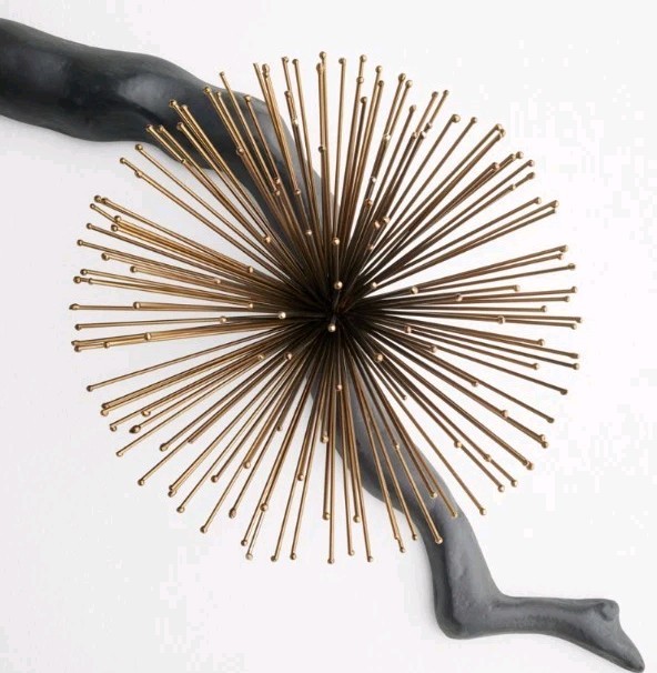 The Cyan Design NWT Black/Gold Ichiyo Blooming Cherry Tree Wall Art is a minimalist and modern dimensional wall sculpture made of metal. It features a black color with gold accents, adding a touch of elegance to any room in your home. The blooming cherry tree design and art theme make it a unique and stylish piece that can fit seamlessly into any decor style. With dimensions of 27" in length and 15" in height, this wall art is lightweight at 8 lbs and can be displayed in both orientations. Perfect for adding a focal point to your living space, this artwork is a statement piece that will catch the eye.