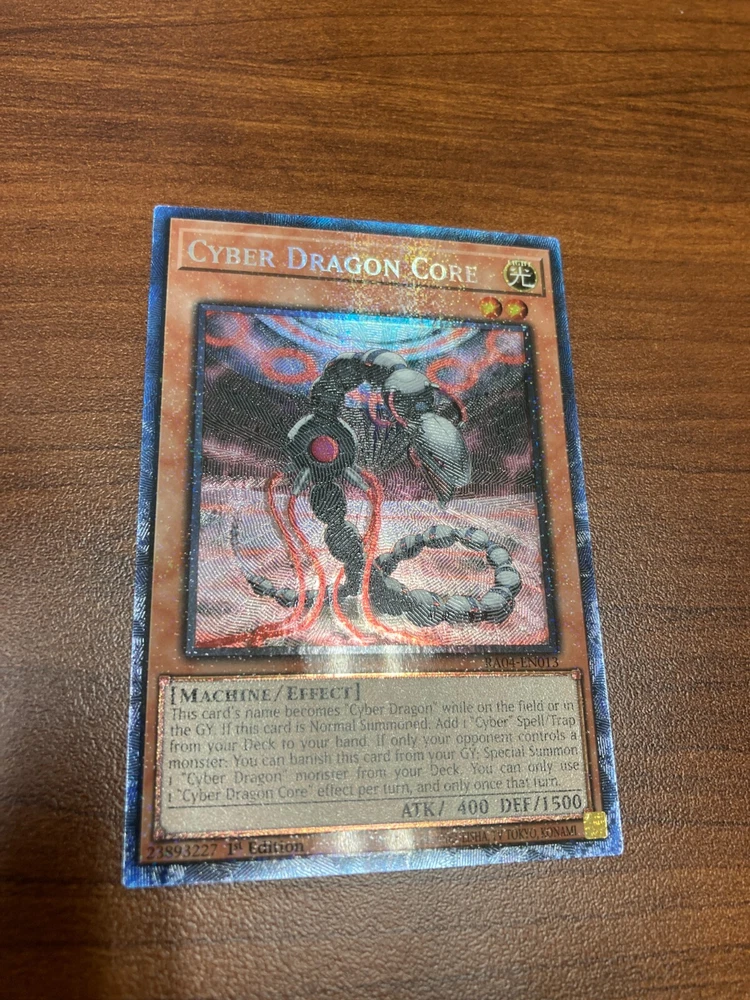Cyber Dragon Core RA04-EN013 - 1st Edition - Prismatic Collector's Rare - NM You are bidding/buying one (1) card. If you would like additional pictures, just ask. _________________________________________________________________________________________________________ Please check out my other listings @ https://www.ebay.com/str/lechungscards I ship all cards in a penny sleeve put into a top-loader and put into a standard envelope. If you have any question or concerns, please feel free to send me a personal message using the e-bay system. Thanks! !NO INTERNATIONAL SHIPPING OR SALES! (Including Canada)