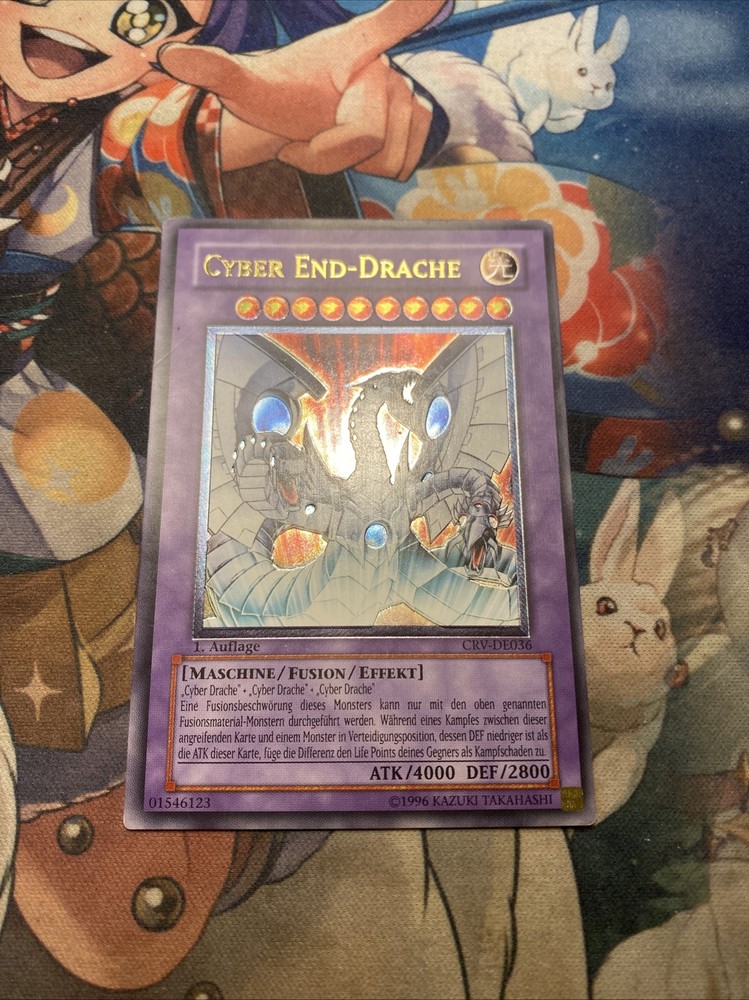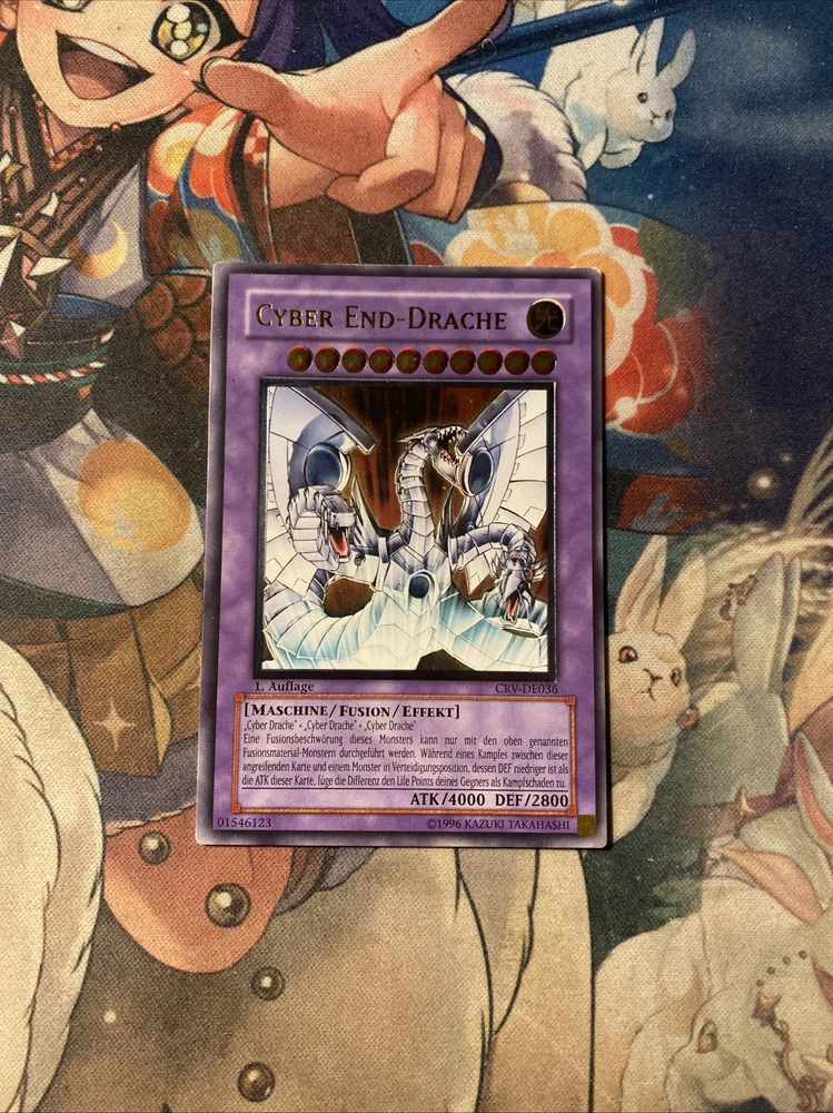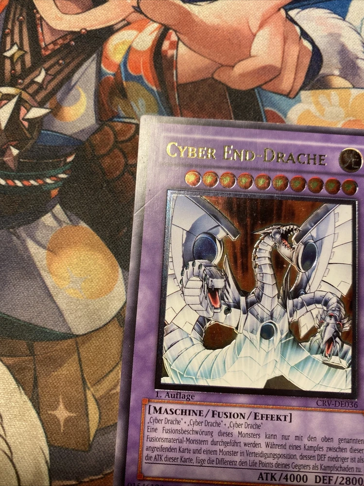 Cyber End Dragon - CRV-DE036 Ultimate Rare ***GERMAN*** 1st ed MP Yugioh Card Labeled as mod play due to diagonal line indent on backside which goes from top right corner to bottom left corner (doesn’t carry to front side)