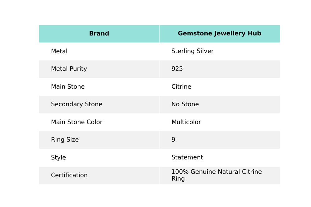 Welcome to Gemstone Treasure Hub Citrine Gemstone Statement Ring Size 9 925 Sterling Silver Jewelry For Women Handmade Ring, Sterling Silver Ring, Citrine Ring, Handcrafted Ring SKU : MR-6444 Gemstone : Citrine Stone Shape : As Seen In Picture Metal Purity : 925 Sterling Silver Ring Size : 9 US Adjustable : _________________________________________________________________ Shipping Handling - Charge - Free ( Condition apply ) Handling Time - One business day . Delivery Time - 3 to 23 Days ( Various on destination ) Postage service - (A.) India Post - Below $100 order which takes 11 to 23 days . (B.) USPS, Fedex, DHL , Aramax- Order above $100 which takes 3 to 7 days . _________________________________________________________________ Returns - 1. We provide a 100% Money Back Guarantee, excluding shipping costs, within 30 days from the date of item receipt. 2. The item must not be altered or damaged in any way shape or form. 3. Upon receiving these items your payment will be refunded. 4. Kindly reach out to us via email to obtain return instructions prior to initiating the return of merchandise. 5. Please allow up to 1 business day for all returns to receivecredit. 6. Sizing does not affect the return policy. _________________________________________________________________ Payment - We accept PayPal for Payment , should made within three days once buying or winning done , in case of late information expected . _________________________________________________________________ FAQ's - Q.(A) ARE THE ITEMS YOU ARE SELLING BRAND NEW? We exclusively offer brand-new products, refraining from the sale of pre-owned jewelry. Our entire jewelry collection is composed of 100% natural, conflict-free pieces. We do not engage in the trade of imitation or lab-grown gemstones and diamonds. Q.(B) WHAT ARE YOUR BUSINESS HOURS? Our business hours are Monday to Friday, 10:00AM to 6:00PM, excluding holidays. ________________________________________________________________ Gemstone Treasure Hub is dedicated to providing customers with exceptional handmade jewelry crafted to the highest standards of quality. We operate as both connoisseurs and manufacturers of artisanal jewelry, possessing a profound expertise in the art of elevating gemstones to perfectly align with any aesthetic preference. We are pleased to offer you the opportunity to create your own jewelry collection, adorned with authentic and exquisite natural gemstones. Our team of highly skilled artisans painstakingly crafts each individual jewelry piece, ensuring the creation of products with a unique identity that feature genuine gemstones. The jewelry articles presented on our website accurately depict the precise pieces that you will receive.