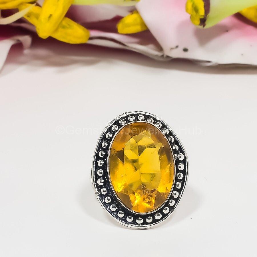 Cyber Monday 925 Silver Citrine Gemstone Anniversary Wedding Statement Ring Sale