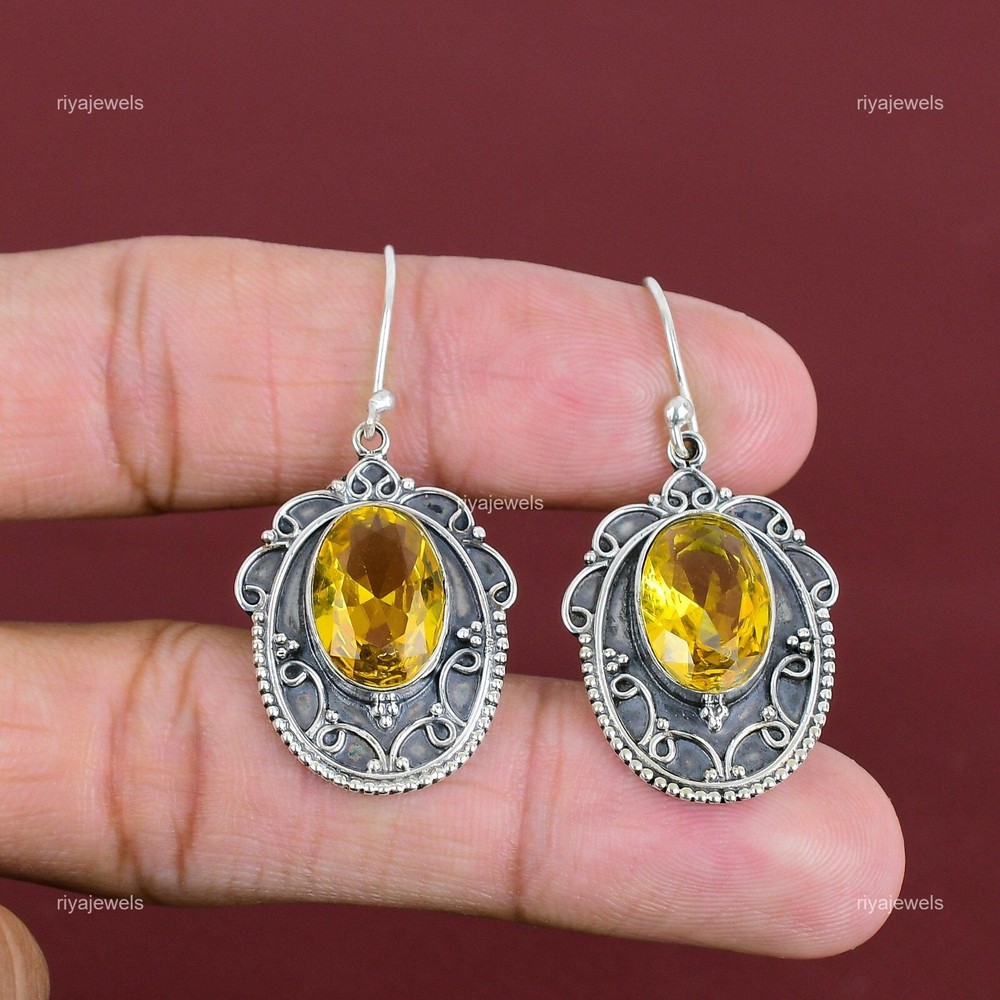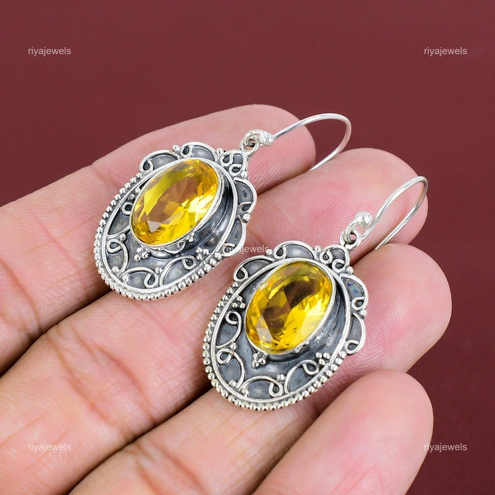 Note : Due to the natural formation of this gemstone. Slight variation in design and color are to be expected. Welcome to Riyajewels Gift For Women Drop/Dangle Earrings 925 Sterling Silver Natural Citrine Gemstone Handmade Earrings, Sterling Silver Earrings, Citrine Earrings, Handcrafted Earrings SKU : PE-1711 Gemstone : Citrine Stone Shape : Oval Metal Purity : 925 Sterling Silver Length : 45 Millimetres Width : 21 Millimetres Silver Jewelry is a popular choice for many people due to its unique properties and numerous benefits. Here are some of the key properties and benefits of wearing silver jewelry: Properties: Durability: Silver is a durable metal that can withstand regular wear and tear. Malleability: Silver is highly malleable, which means it can be easily shaped and molded into various designs. Conductivity: Silver is an excellent conductor of heat and electricity. Anti-bacterial: Silver has natural anti-bacterial properties, which can help prevent the growth of harmful bacteria. Benefits: Aesthetic appeal: Silver jewelry is known for its beauty and versatility, and can be worn with a variety of outfits and styles. Hypoallergenic: Silver is generally hypoallergenic, which means it is unlikely to cause an allergic reaction in most people. Healing properties: Some people believe that wearing silver jewelry can help with various physical and emotional conditions, such as arthritis, anxiety, and depression. Spiritual significance: Silver has been used in various cultures for its spiritual and symbolic significance, and wearing silver jewelry can help to connect with these traditions. Investment value: Silver is a precious metal that retains its value over time, and investing in silver jewelry can be a smart financial decision. Overall, silver jewelry offers a unique combination of beauty, durability, and benefits, making it a popular choice for people around the world. For Mother's Day Gift For Father's Day Gift For Promise For Valentine' Day For Halloween Party For Christmas Day Gift For New Year Party For Mom For Her If you can't find the information you need or need some advice for your design? Feel free to contact us. We are fast to reply :) All our work is made by hand with Love and Care in our workshop Thank you so much for visiting and hope you enjoy shopping with us Riyajewels is dedicated to providing customers with high-quality sterling silver jewelry. As a manufacturer of handmade jewelry, we offer an extensive range of silver gemstone jewelry that demonstrates our exceptional craftsmanship. We are skilled in adorning gemstones to complement any style, and we give you the freedom to design your own jewelry collection with dazzling, natural, and genuine gemstones. Our talented craftsmen carefully handcraft each jewelry piece, ensuring that it is unique and made with authentic gemstones.