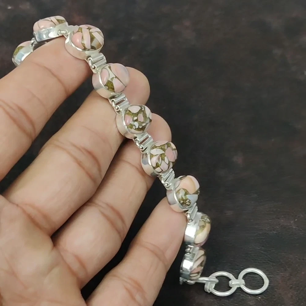 Note : Due to the natural formation of this gemstone. Slight variation in design and color are to be expected. Welcome to Kalka Stones Gift For Women Chain Adjustable Bracelet 925 Silver Natural Copper Pink Opal Handmade Bracelet, Sterling Silver Bracelet, Copper Pink Opal Bracelet, Handcrafted Bracelet SKU : KB-2 Gemstone : Copper Pink Opal Stone Shape : Oval Metal Purity : 925 Sterling Silver Bracelet Length : 6 Inches Adjustable : Yes Silver Jewelry is a popular choice for many people due to its unique properties and numerous benefits. Here are some of the key properties and benefits of wearing silver jewelry: Properties: Durability: Silver is a durable metal that can withstand regular wear and tear. Malleability: Silver is highly malleable, which means it can be easily shaped and molded into various designs. Conductivity: Silver is an excellent conductor of heat and electricity. Anti-bacterial: Silver has natural anti-bacterial properties, which can help prevent the growth of harmful bacteria. Benefits: Aesthetic appeal: Silver jewelry is known for its beauty and versatility, and can be worn with a variety of outfits and styles. Hypoallergenic: Silver is generally hypoallergenic, which means it is unlikely to cause an allergic reaction in most people. Healing properties: Some people believe that wearing silver jewelry can help with various physical and emotional conditions, such as arthritis, anxiety, and depression. Spiritual significance: Silver has been used in various cultures for its spiritual and symbolic significance, and wearing silver jewelry can help to connect with these traditions. Investment value: Silver is a precious metal that retains its value over time, and investing in silver jewelry can be a smart financial decision. Overall, silver jewelry offers a unique combination of beauty, durability, and benefits, making it a popular choice for people around the world. For Mother's Day Gift For Father's Day Gift For Promise For Valentine' Day For Halloween Party For Christmas Day Gift For New Year Party For Mom For Her If you can't find the information you need or need some advice for your design? Feel free to contact us. We are fast to reply :) All our work is made by hand with Love and Care in our workshop Thank you so much for visiting and hope you enjoy shopping with us Kalka Stones is dedicated to providing customers with high-quality sterling silver jewelry. As a manufacturer of handmade jewelry, we offer an extensive range of silver gemstone jewelry that demonstrates our exceptional craftsmanship. We are skilled in adorning gemstones to complement any style, and we give you the freedom to design your own jewelry collection with dazzling, natural, and genuine gemstones. Our talented craftsmen carefully handcraft each jewelry piece, ensuring that it is unique and made with authentic gemstones.